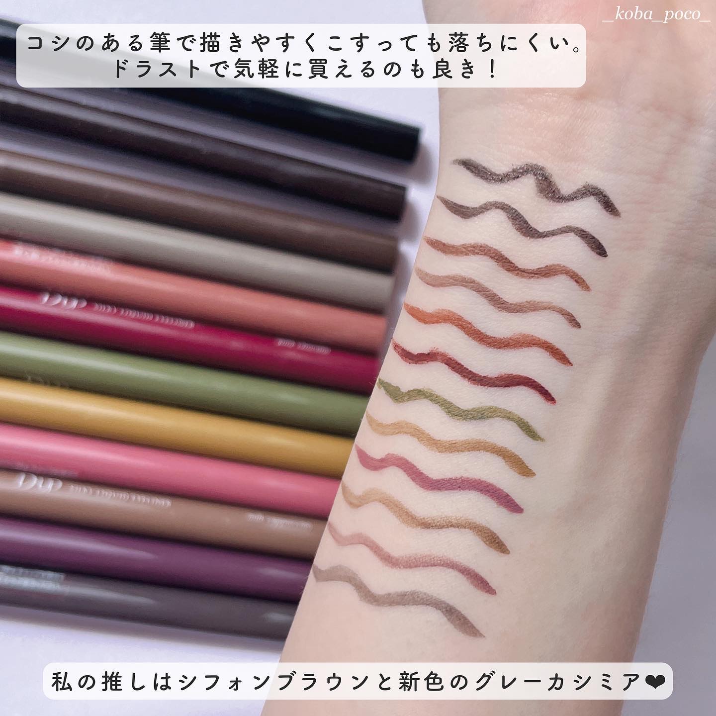 新色のアズキブラウンと限定のマッチャカーキ、今更ゲットしました😮💨💕 するするっとした書き心地は健在です。ゴシゴシこすっても落ちにくい💪🏻💫 やっぱり大好きならアイライナーでした😉❤︎