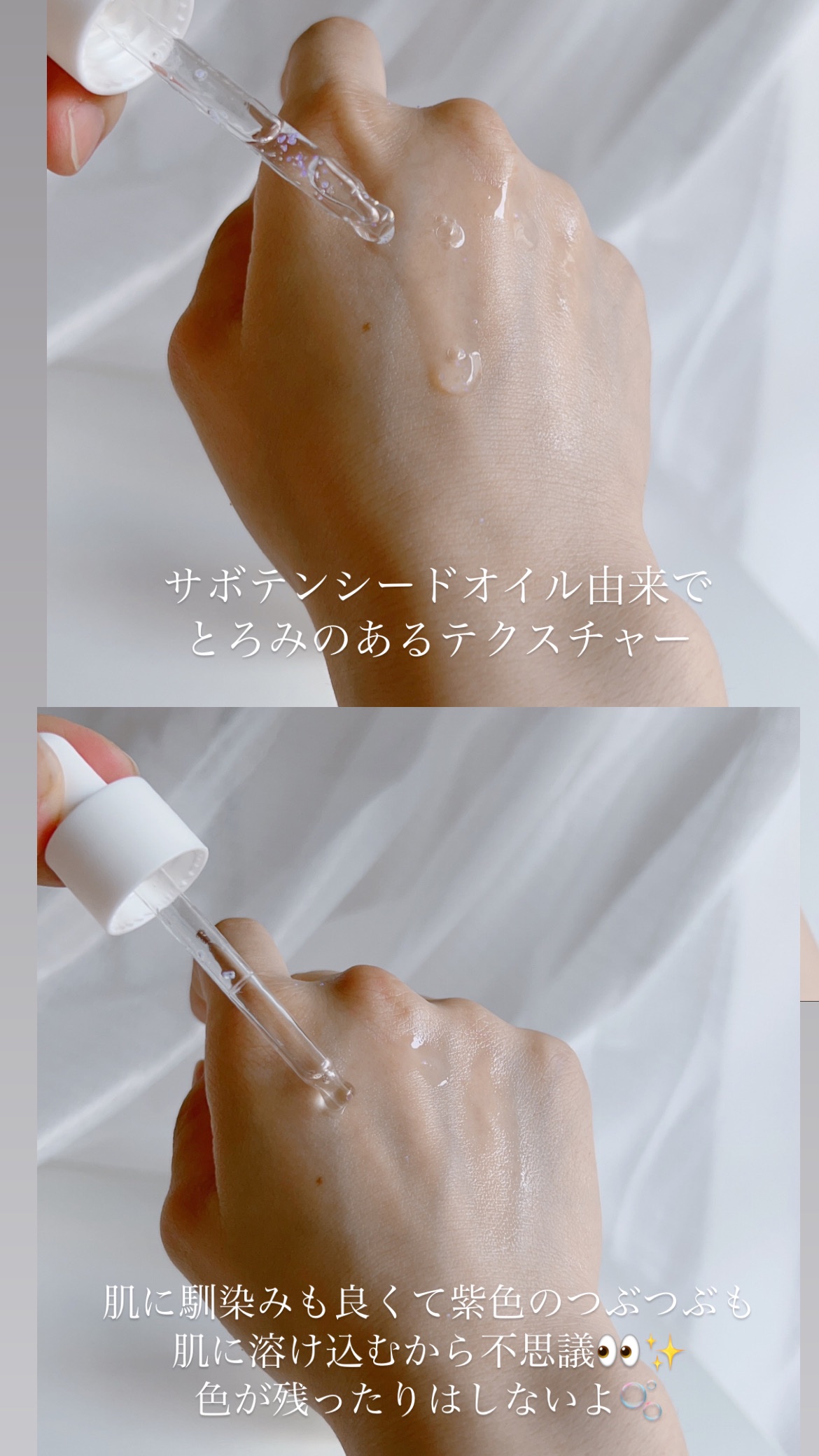 キラッキラ具合すごくないですか🥹✨ 見る角度によってキラキラ具合が違うんです! これ1本でスキンケアと下地の役割をしてくれてベース前に仕込むことでツヤ肌再現✨ 保湿力もあるので乾燥肌の私にとってこれからの時期にも期待できるのが嬉しいです!