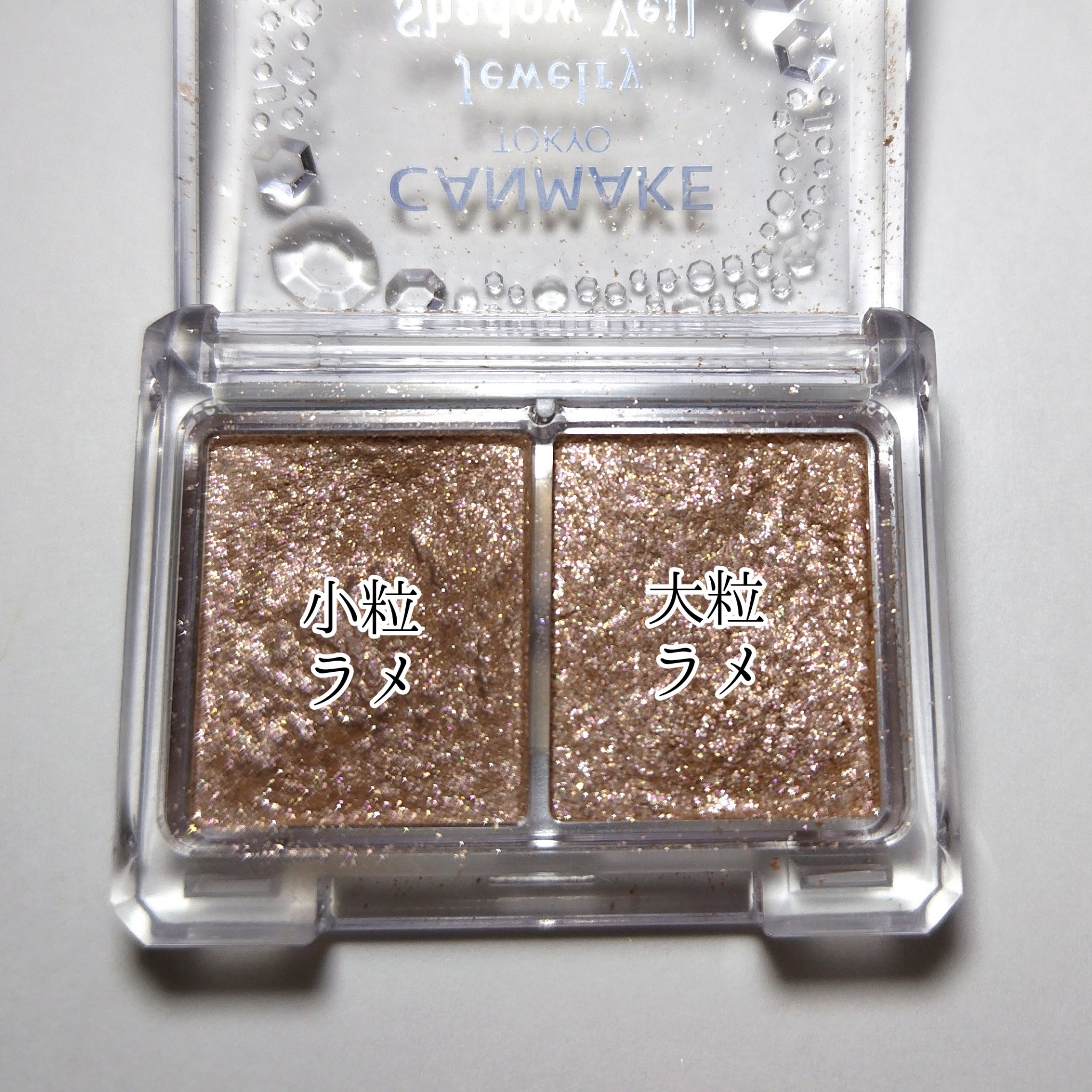 ⋈♡*。゚⋈♡*。゚⋈♡*。゚⋈♡*。゚⋈♡*。゚キャンメイクジュエリーシャドウベール06バレリーナベージュベース色が発色せずにラメだけをのせられるアイシャドウ。小粒と大粒のラメで、どんなメイクも理想の輝きに。アイシャドウの上に塗布したり、ア...