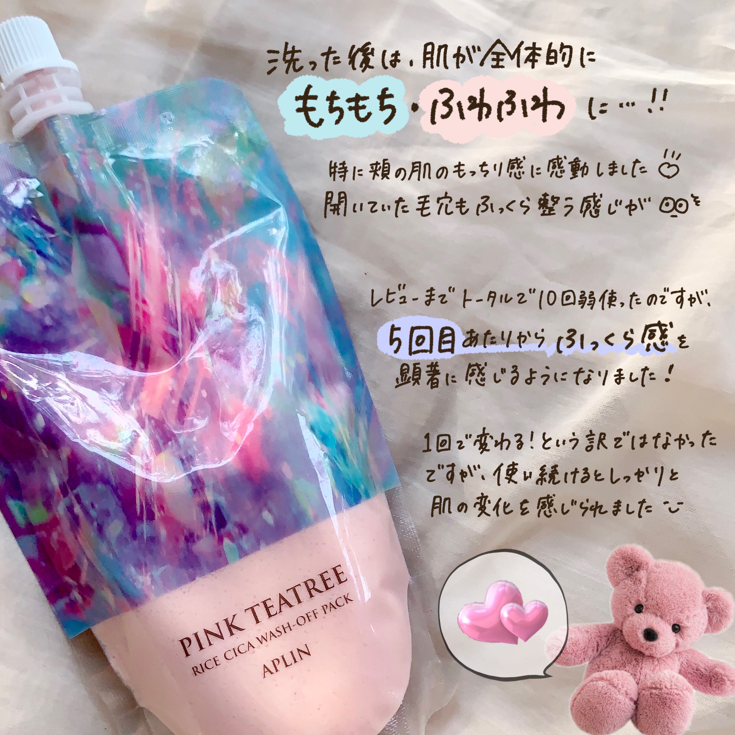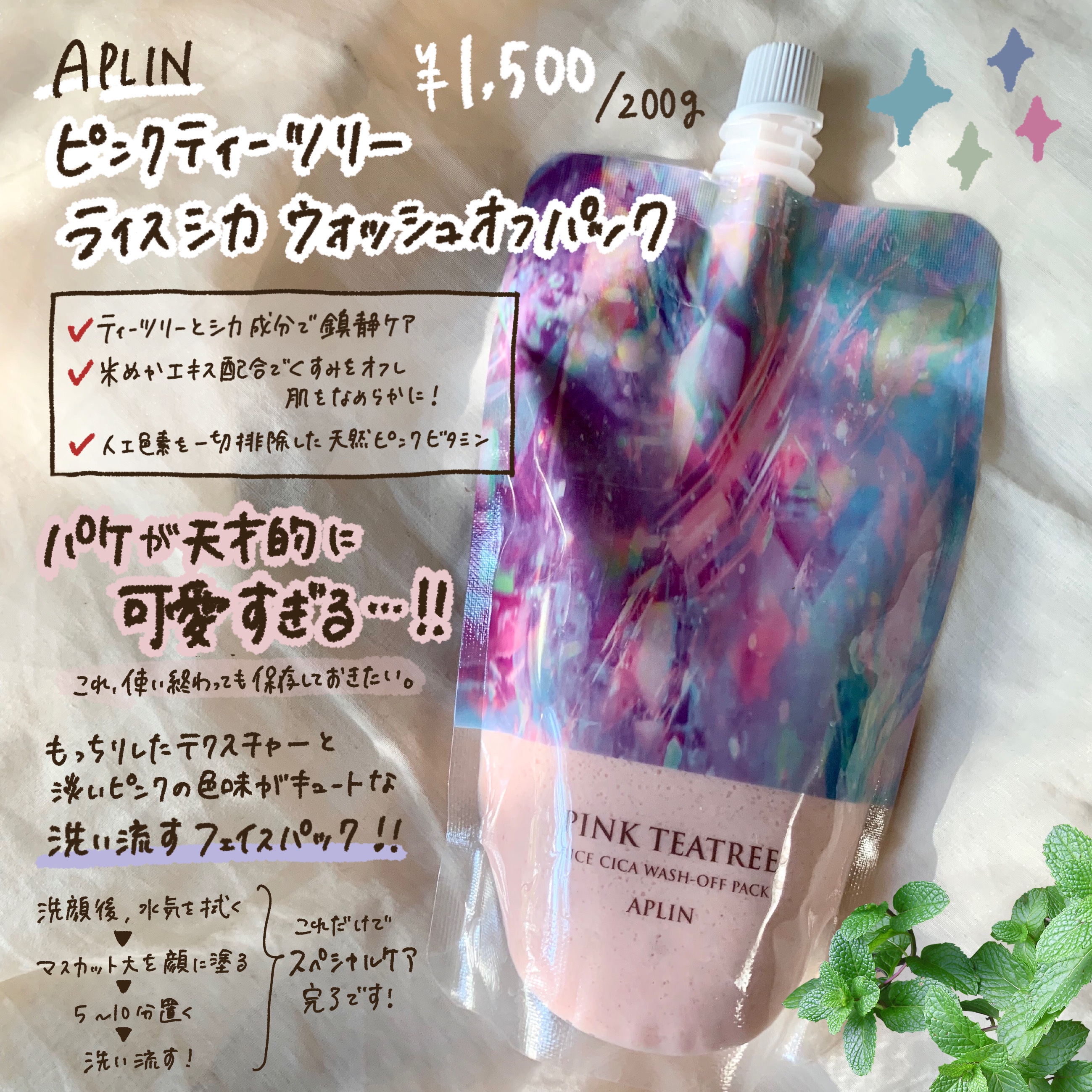 今日のパックは大好きアプリンの💕APLINピンクティーツリーライスシカウォッシュオフパックザラつく古い角質をケアしてパッと明るくくすみOFFしてくれる。クリームタイプでピンクティーツリーシリーズ使ってる人は分かると思うけどあのいい香りをまとえ...