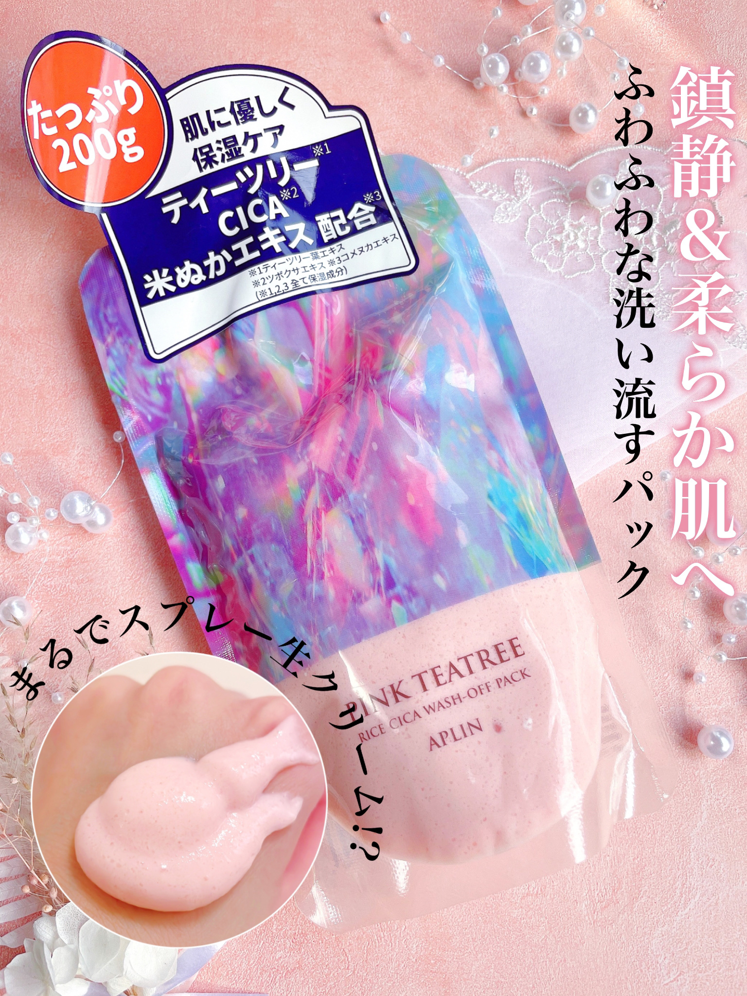 今日のパックは大好きアプリンの💕APLINピンクティーツリーライスシカウォッシュオフパックザラつく古い角質をケアしてパッと明るくくすみOFFしてくれる。クリームタイプでピンクティーツリーシリーズ使ってる人は分かると思うけどあのいい香りをまとえ...