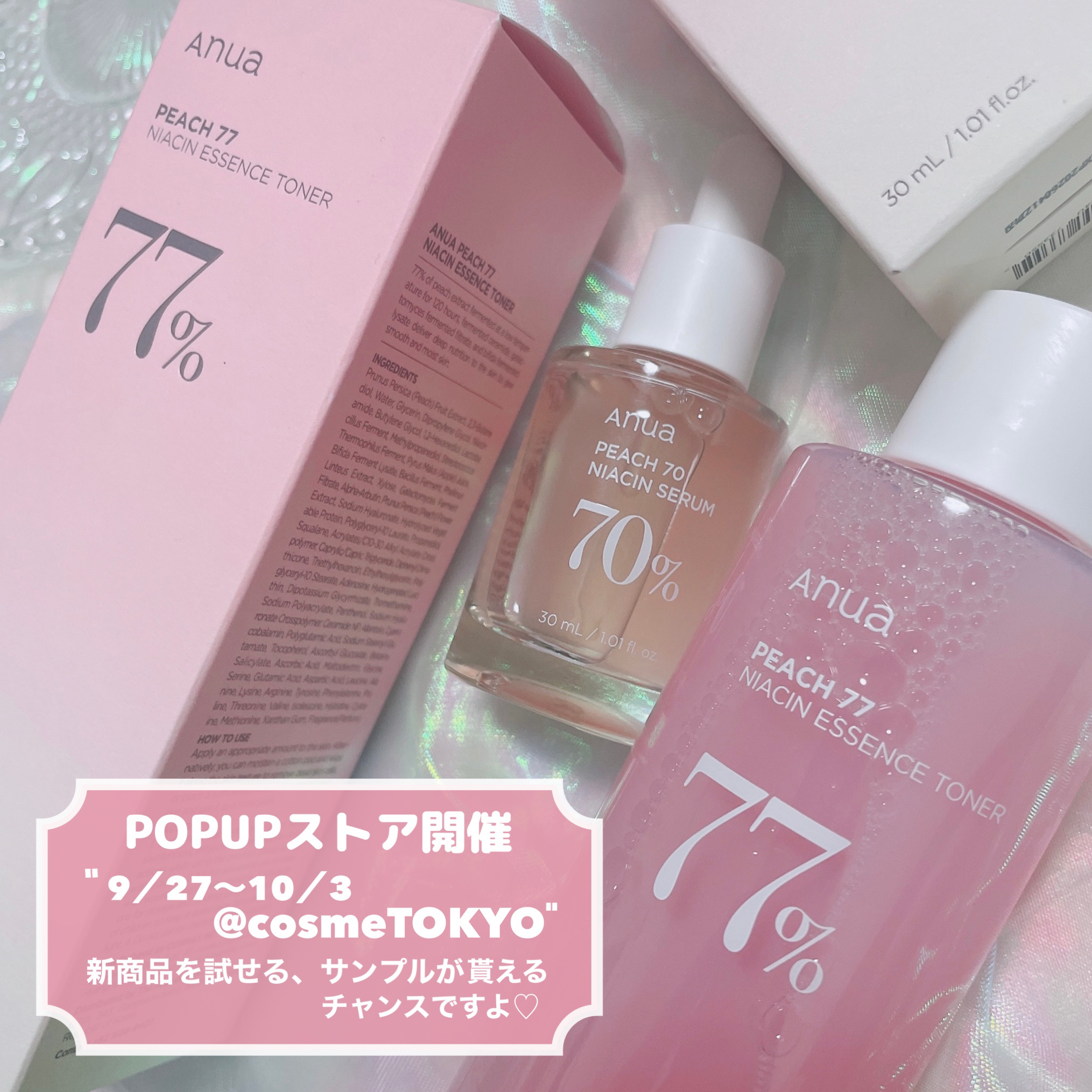 みずみずしい透明感、肌にチャージ🫧Anua桃77ナイアシンエッセンストナー\ピーチエキス×ナイアシンアミド配合!/ツルッとしたキメ肌に整え、メイクの土台を整えてくれるトナー✨💧少しとろみがあるのにベタつかずしっとり保湿💧重ね付けやコットンパッ...