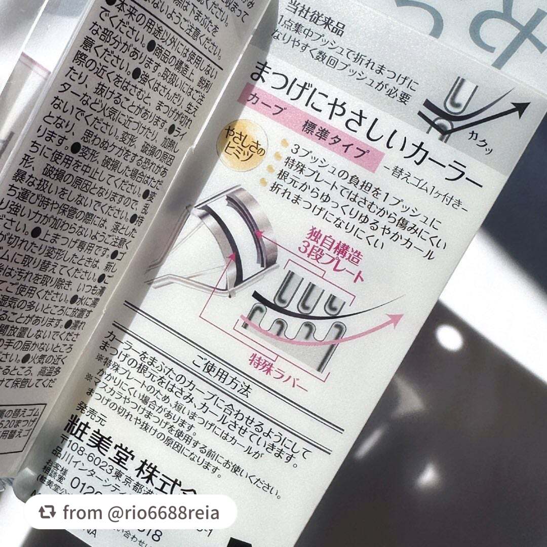 - 1プッシュでまつげの根元・中央・毛先までをキレイにカールする、新構造のカーラーです ●3段プレートの採用で3プッシュの負担を1プッシュに Wラバーではさむので傷みにくく、まつげにやさしいカーラーです ●1プッシュで簡単に、ナチュラルカールの仕上がり 毛先からゆっくり、ゆるやかにカールするので、不自然な根元折れまつげになりにくいです まつげにやさしいカーラー 標準タイプ まつげにやさしいカーラー 標準~深めタイプ 本体サイズ:W36×H96mm