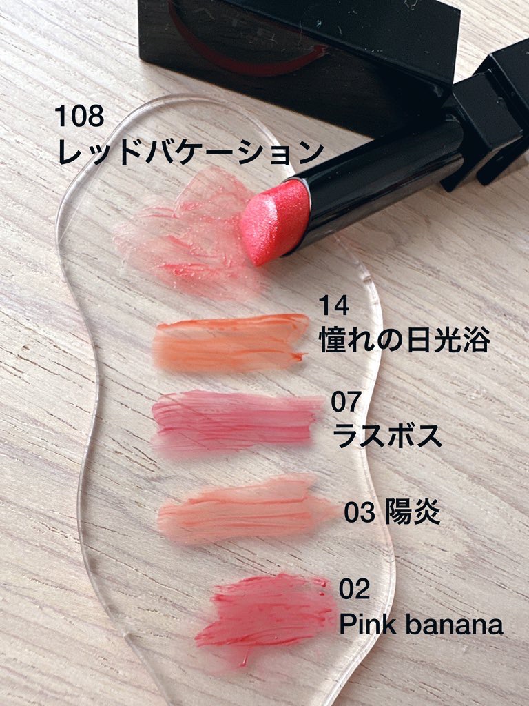 - <01 欲望の塊> テトライソステアリン酸ジペンタエリスリチル、トリ(カプリル酸/カプリン酸)グリセリル、オクチルドデカノール、ラウロイルグルタミン酸ジ(フィトステリル/オクチルドデシル)、ビスアルキル(C16-18)グリセリルウンデシルジメチコン、イソノナン酸イソトリデシル、水添ポリイソブテン、ラウロイルグルタミン酸ジ(オクチルドデシル/フィトステリル/ベヘニル)、パラフィン、合成ワックス、ダイマージリノール酸(フィトステリル/イソステアリル/セチル/ステアリル/ベヘニル)、マイクロクリスタリンワックス、水添マイクロクリスタリンワックス、ヒドロキシステアリン酸エチルヘキシル、トコフェロール、ホホバ種子油、オリーブ果実油、アーモンド油、(エチレン/プロピレン)コポリマー、ポリエチレン、ジメチコン、(+/-)(チタン/酸化チタン)焼結物、マイカ、ラウロイルアスパラギン酸Na、ラウロイルリシン、塩化亜鉛、酸化チタン、酸化鉄、水酸化Al、硫酸Ba、トリイソステアリン酸イソプロピルチタン、酸化スズ、ホウケイ酸(Ca/Al)、合成フルオロフロゴパイト、黄4、黄5、赤104(1)、赤201、赤202 <02 ピンクバナナ> テトライソステアリン酸ジペンタエリスリチル、トリ(カプリル酸/カプリン酸)グリセリル、オクチルドデカノール、ラウロイルグルタミン酸ジ(フィトステリル/オクチルドデシル)、ビスアルキル(C16-18)グリセリルウンデシルジメチコン、イソノナン酸イソトリデシル、水添ポリイソブテン、ラウロイルグルタミン酸ジ(オクチルドデシル/フィトステリル/ベヘニル)、パラフィン、合成ワックス、ダイマージリノール酸(フィトステリル/イソステアリル/セチル/ステアリル/ベヘニル)、マイクロクリスタリンワックス、水添マイクロクリスタリンワックス、ヒドロキシステアリン酸エチルヘキシル、トコフェロール、ホホバ種子油、オリーブ果実油、アーモンド油、(エチレン/プロピレン)コポリマー、ポリエチレン、ジメチコン、(+/-)(チタン/酸化チタン)焼結物、マイカ、ラウロイルアスパラギン酸Na、ラウロイルリシン、塩化亜鉛、酸化チタン、酸化鉄、水酸化Al、硫酸Ba、トリイソステアリン酸イソプロピルチタン、酸化スズ、ホウケイ酸(Ca/Al)、合成フルオロフロゴパイト、黄4、黄5、赤104(1)、赤201、赤202 <03 陽炎> テトライソステアリン酸ジペンタエリスリチル、トリ(カプリル酸/カプリン酸)グリセリル、オクチルドデカノール、ラウロイルグルタミン酸ジ(フィトステリル/オクチルドデシル)、ビスアルキル(C16-18)グリセリルウンデシルジメチコン、イソノナン酸イソトリデシル、水添ポリイソブテン、ラウロイルグルタミン酸ジ(オクチルドデシル/フィトステリル/ベヘニル)、パラフィン、合成ワックス、ダイマージリノール酸(フィトステリル/イソステアリル/セチル/ステアリル/ベヘニル)、マイクロクリスタリンワックス、水添マイクロクリスタリンワックス、ヒドロキシステアリン酸エチルヘキシル、トコフェロール、ホホバ種子油、オリーブ果実油、アーモンド油、(エチレン/プロピレン)コポリマー、ポリエチレン、ジメチコン、(+/-)(チタン/酸化チタン)焼結物、マイカ、ラウロイルアスパラギン酸Na、ラウロイルリシン、塩化亜鉛、酸化チタン、酸化鉄、水酸化Al、硫酸Ba、トリイソステアリン酸イソプロピルチタン、酸化スズ、ホウケイ酸(Ca/Al)、合成フルオロフロゴパイト、黄4、黄5、赤104(1)、赤201、赤202 <04 パンプキンワイン> テトライソステアリン酸ジペンタエリスリチル、トリ(カプリル酸/カプリン酸)グリセリル、オクチルドデカノール、ラウロイルグルタミン酸ジ(フィトステリル/オクチルドデシル)、ビスアルキル(C16-18)グリセリルウンデシルジメチコン、イソノナン酸イソトリデシル、水添ポリイソブテン、ラウロイルグルタミン酸ジ(オクチルドデシル/フィトステリル/ベヘニル)、パラフィン、合成ワックス、ダイマージリノール酸(フィトステリル/イソステアリル/セチル/ステアリル/ベヘニル)、マイクロクリスタリンワックス、水添マイクロクリスタリンワックス、ヒドロキシステアリン酸エチルヘキシル、トコフェロール、ホホバ種子油、オリーブ果実油、アーモンド油、(エチレン/プロピレン)コポリマー、ポリエチレン、ジメチコン、(+/-)(チタン/酸化チタン)焼結物、マイカ、ラウロイルアスパラギン酸Na、ラウロイルリシン、塩化亜鉛、酸化チタン、酸化鉄、水酸化Al、硫酸Ba、トリイソステアリン酸イソプロピルチタン、酸化スズ、ホウケイ酸(Ca/Al)、合成フルオロフロゴパイト、黄4、黄5、赤104(1)、赤201、赤202 <05 ダークフィグ> テトライソステアリン酸ジペンタエリスリチル、トリ(カプリル酸/カプリン酸)グリセリル、オクチルドデカノール、ラウロイルグルタミン酸ジ(フィトステリル/オクチルドデシル)、ビスアルキル(C16-18)グリセリルウンデシルジメチコン、イソノナン酸イソトリデシル、水添ポリイソブテン、ラウロイルグルタミン酸ジ(オクチルドデシル/フィトステリル/ベヘニル)、