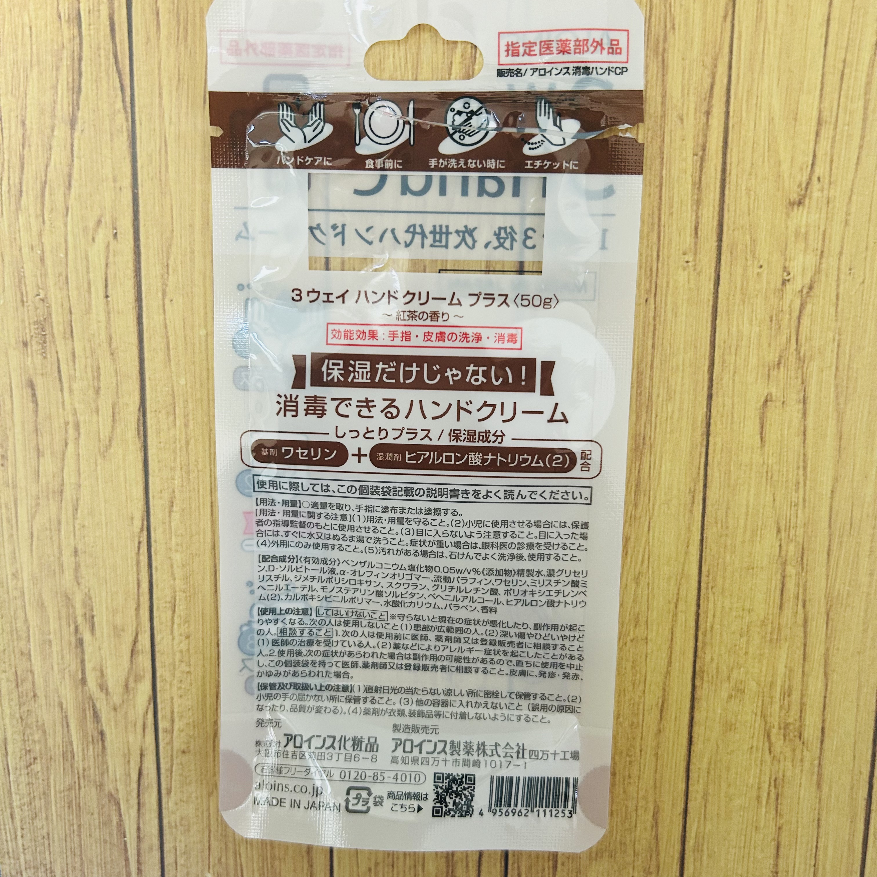 しっかり手も保湿しましょう!今回ご紹介するのは私が愛してやまないアロインス化粧品より販売されているハンドクリームです。保湿と消毒を同時にこなし、尚且つ香りが良い。 スリーウェイハンドクリーム。ドラッグストアにはあまり出回っていないようなので、是非ともぎんなんやにてご購入くださいませ! うるおい成分「ヒアルロン酸」「スクワラン」でかさかさ手肌を保湿・保護。同時に消毒効果とシーンを選ばないほのかな香りを演出。