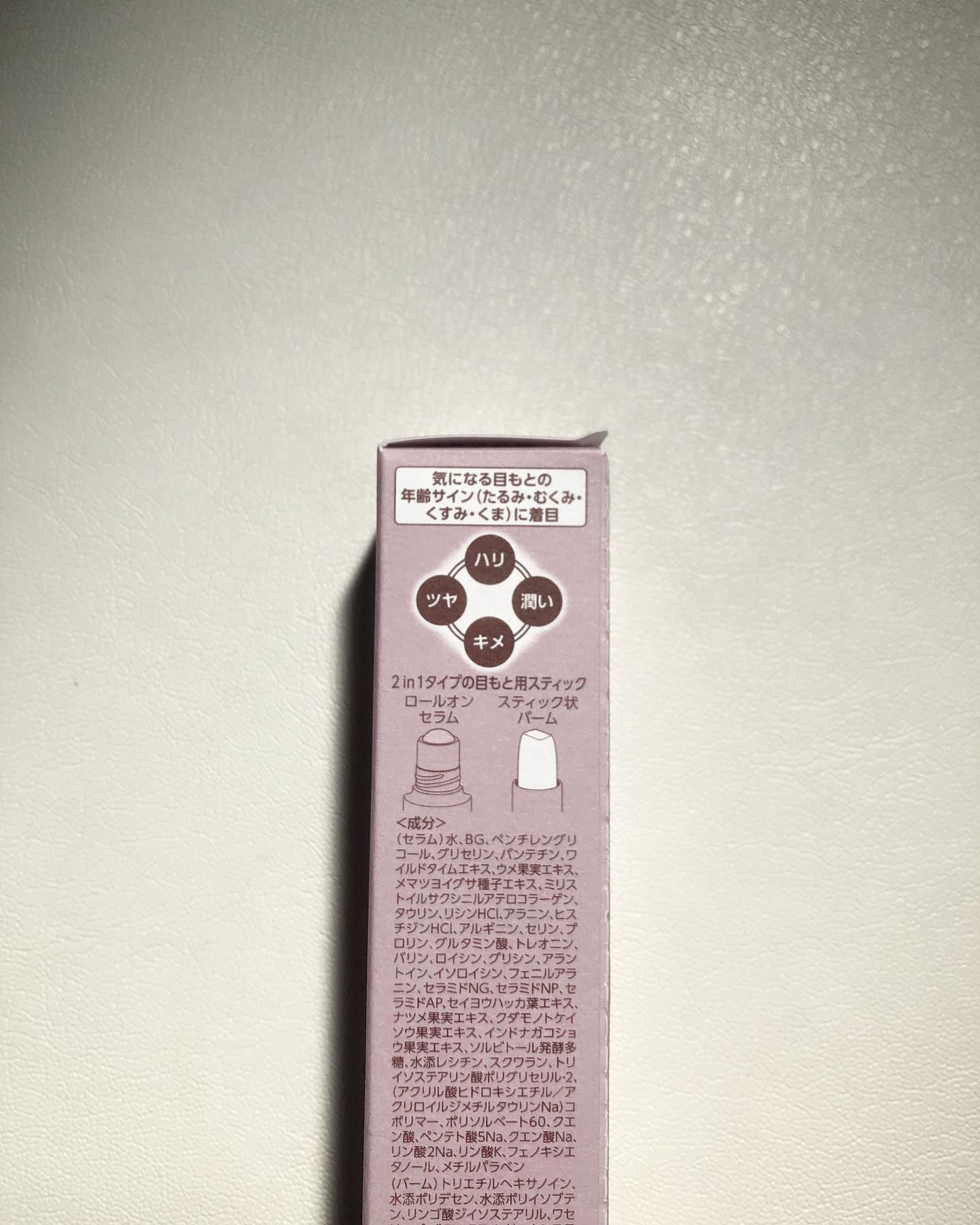 日本初の2in1スティックタイプ アイケアアイテム✨ セラムとバームの2段階浸透ケアを一つにしたこの製品は、目元の悩みに全方位からアプローチしてくれるそう! ころころするとロールがひんやりしているので、心地いいです! 次に使うのがバーム。一見固いかと思いきや体温でじゅわっと溶けるのでするすると塗布できます。 バームはメイクの上からでも使えるので、外出先でも乾燥が気になる時に使っています✨