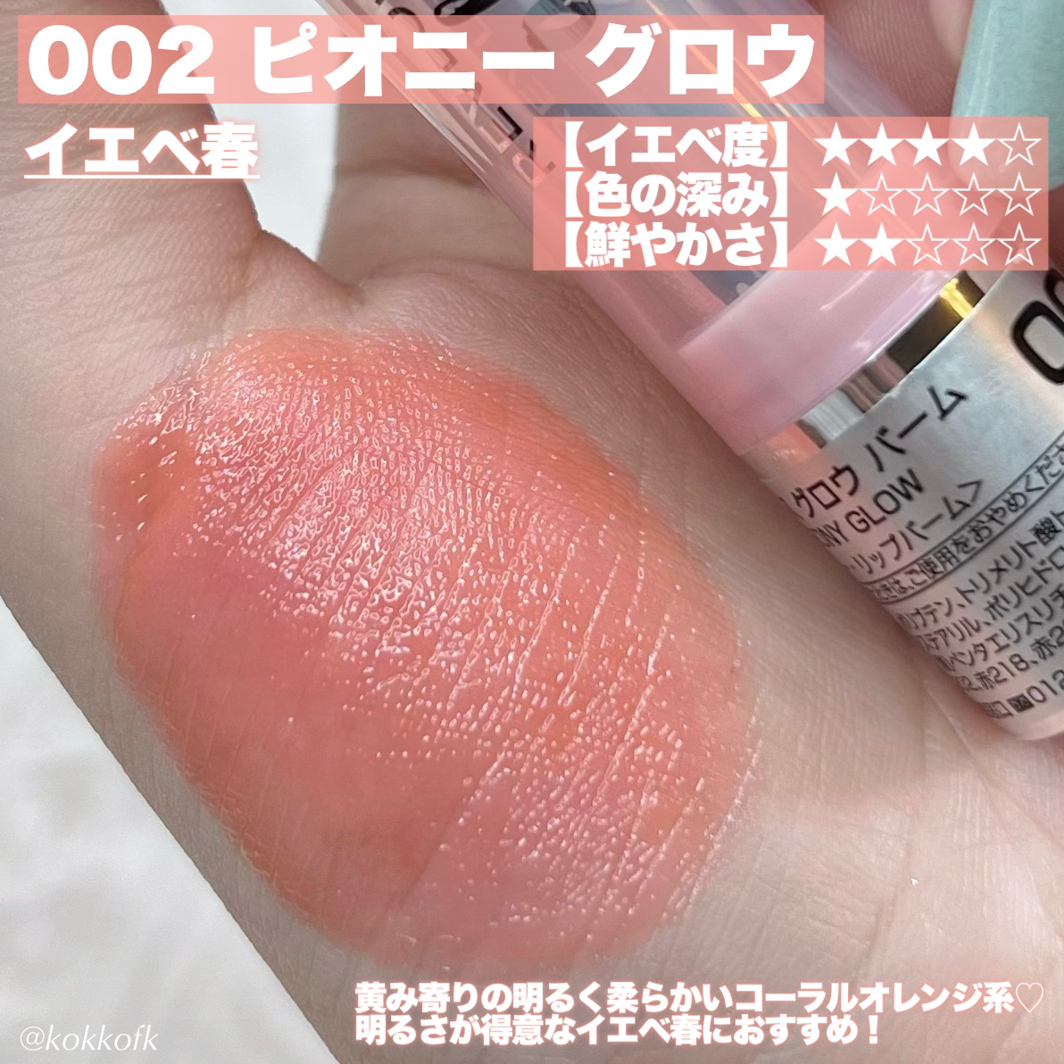 このバームはワセリンのようなとにかくうるうるの透明ツヤ感で、唇に負担なく薄づきの発色です💓 やや黄みの柔らかいヌードベージュ 明るさが得意なイエベ春におすすめ! 明るく澄んだ青みピンク 明るさが得意なブルベにおすすめ! やや黄みの澄んだコーラルレッド 2ndブルベのイエベ春におすすめ! 鮮やかで澄んだ青みレッド 鮮やかさが得意なブルベにおすすめ! 柔らかいくすみベージュブラウン 柔らかい色が得意なイエベにおすすめ! やや青みの柔らかいくすみレッド 柔らかい色が得意なブルベ夏に! しっかり青みのモーブピンク 1st2ndブルベにおすすめ!