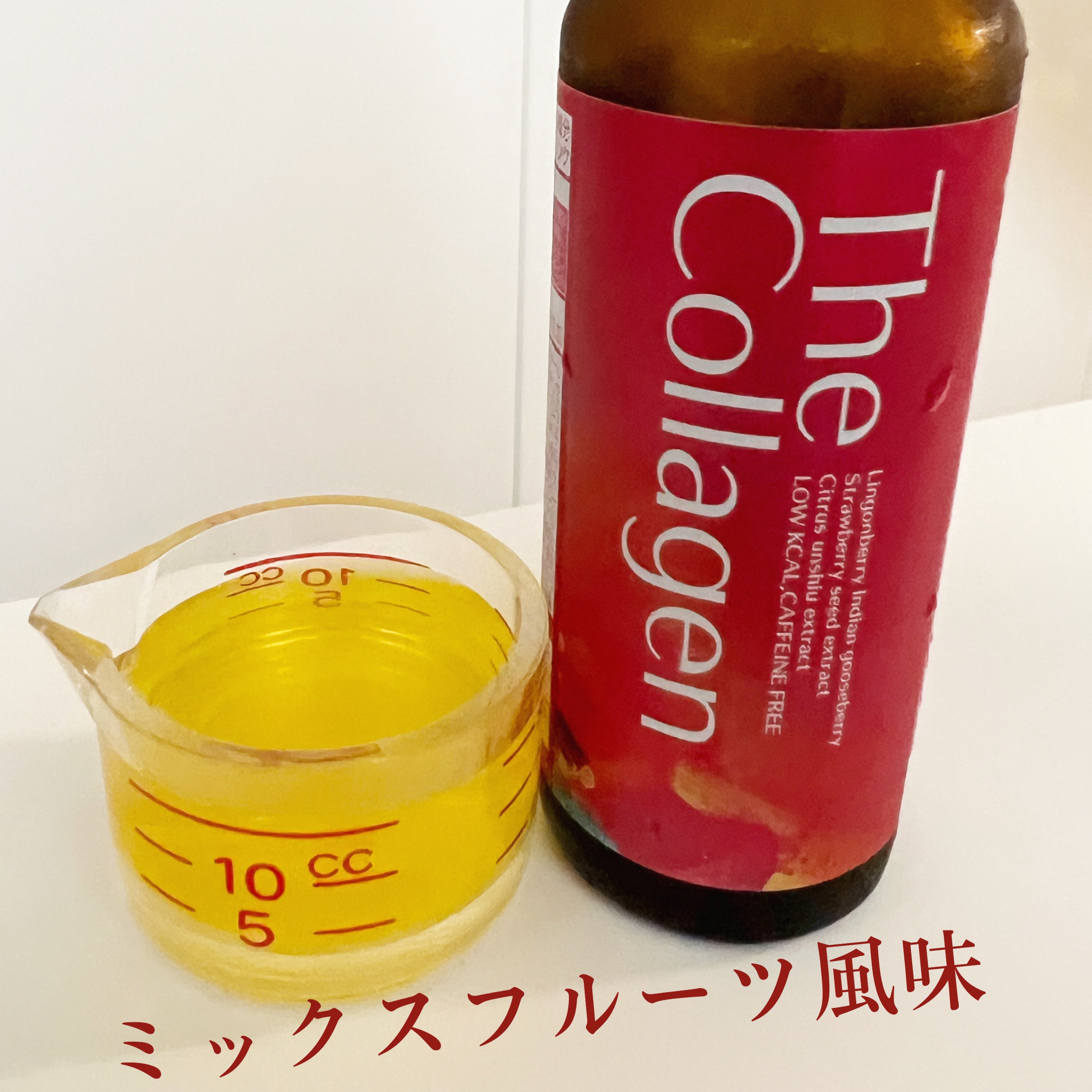 1本で厳選された10種の美容成分を手軽に摂取出来る、コラーゲンドリンク💓 カロリーはたったの8.1kcalなので、低カロリー!ダイエット中でも気にせず飲めちゃいます🫢‼️ 味はコラーゲンドリンク独特の生臭さはなく、ミックスフルーツ風味🍊ほんのりフルーティーな甘さで、後味はサッパリとしています✨
