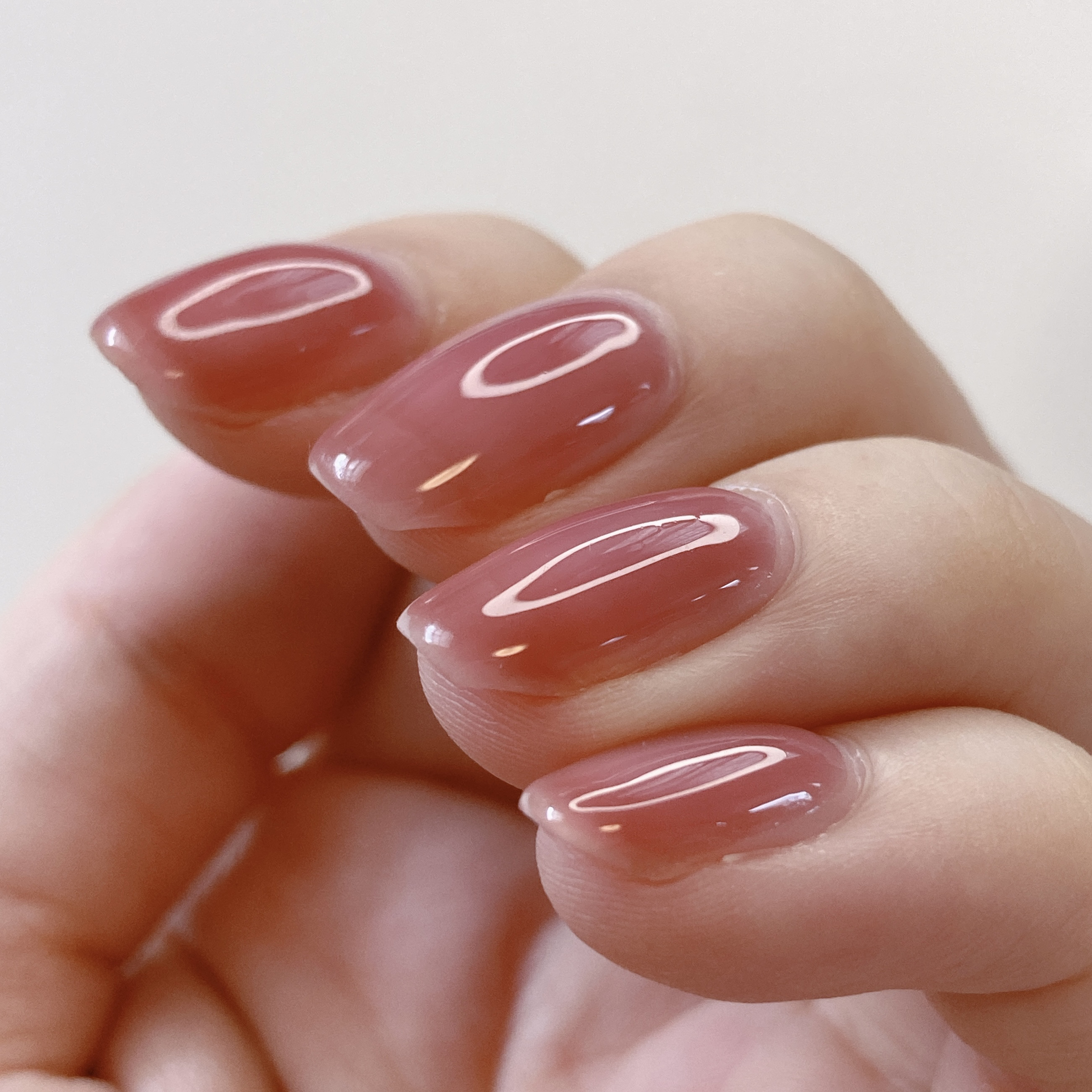 ローズブラウンだけこの中だとすこし透明感が低い色 落ち着いたカラーで使いやすいです 他2つはクリア度が高い色ですベースカラーが透明のままだと 自爪の色が透けてもっとピンクぽさが強く出ます ベース:セリア ピールオフベース トップ:ネイルタウン irogel グロッシートップ (ノンワイプトップ)