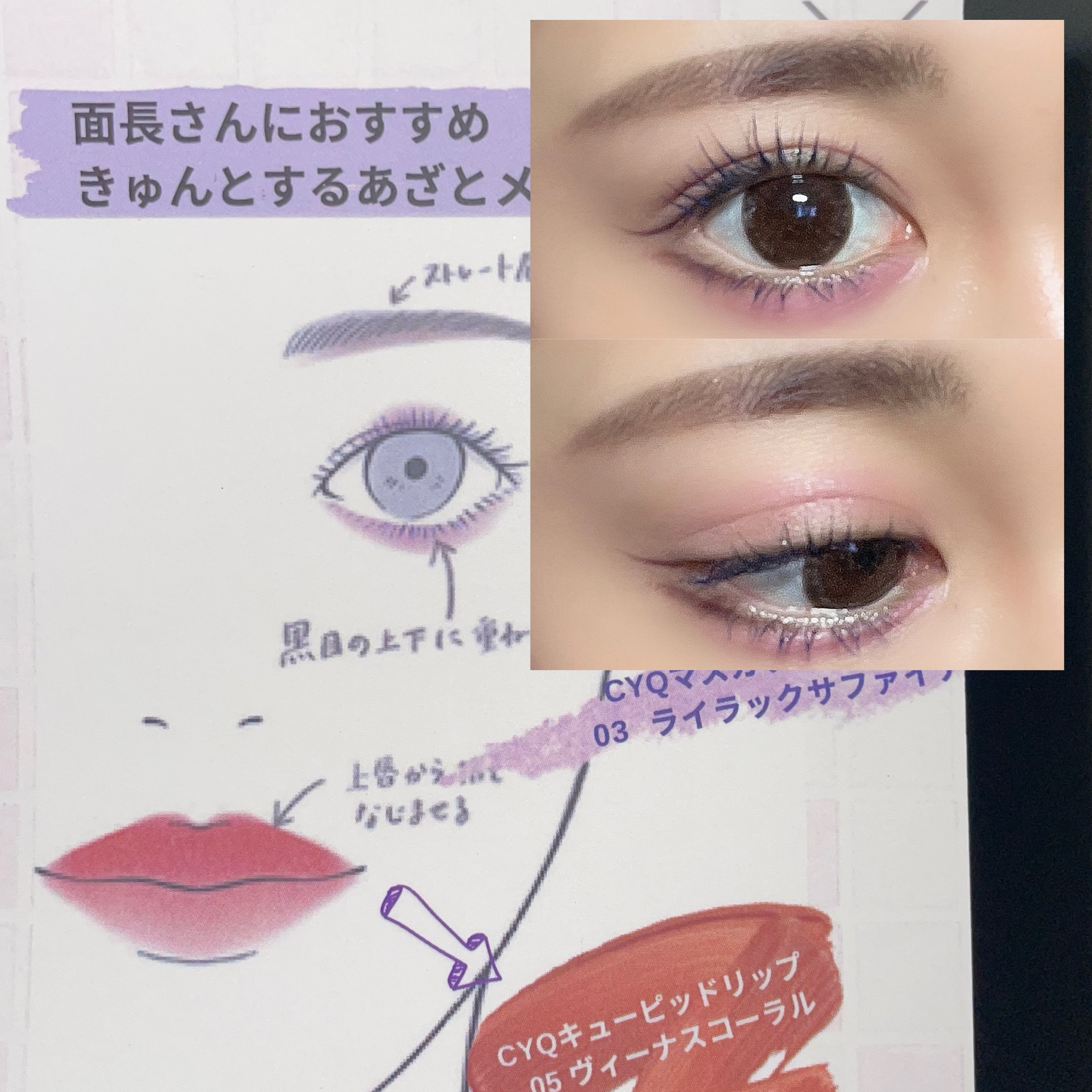 根元から色づけることができる柔らかくて細い「やわほそブラシ」でまつ毛だけでなくアイラインを強調するウォータープルーフマスカラと、細部までスルスル描ける微細パールの高発色クレヨンライナーの2in1仕様⭐︎⭐︎⭐︎ 黒目を綺麗に見せるサファイアのようなブルーのカラーマスカラ。彩度が高すぎないので馴染みも良いです!しっかりしたウォータープルーフなのでヨレて目元がブルーになってしまう事も無かったです◎ 遊び心あるパープルライナーはかんたんに中顔面短縮メイクが完成!クレヨンタイプでするする描けて、パール感のある艶々の仕上がり◎