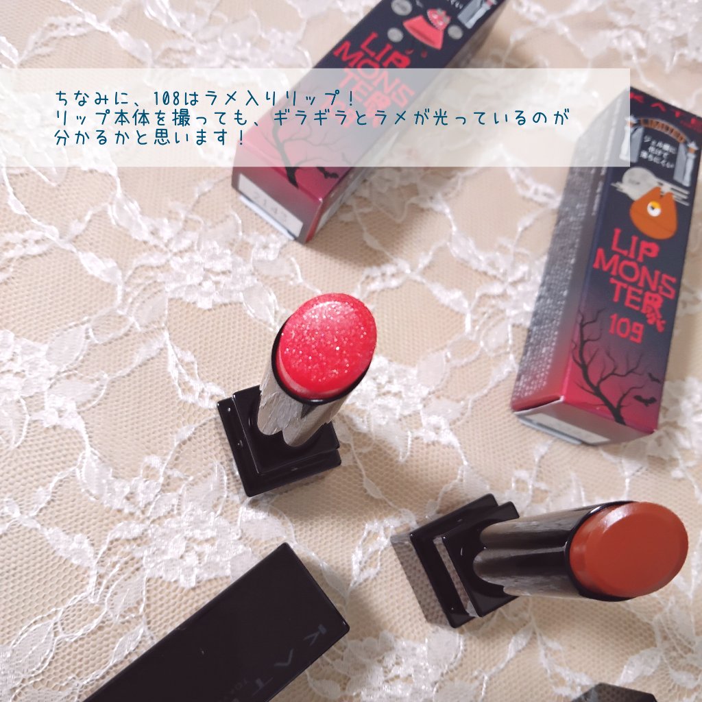 - 落ちにくさも美発色もよくばりたい、つけたての色が長時間持続する人気の口紅リップモンスター。 唇から蒸発する水分を活用して密着ジェル膜に変化する独自技術※で、つけたての色が長時間持続。 高発色&保湿。 ※当社独自の色持ち技術 ■花火のようにまぶしくきらめく 繊細なラメが際立つ限定色 EX-6 ピンクカラー×青ラメ【ロケット花火流星群】 EX-7 オレンジカラー×黄&緑ラメ【100万発の線香花火】 EX-8 レッドカラー×緑ラメ【打ち上げ花火ブランコ】 ■深みレッド系カラーの限定色 EX-9 戦慄の喜笑 (限定色) EX-10 狂気の怒号 (限定色) 【2025クリスマスコフレ】 落ちにくいリップモンスターから、唇の血色感を底上げする ホリデーシーズン限定の熱感ニュアンスベージュ系カラー登場。 EX-11 紅煙宿る贈り物(限定色):ボルドーベージュ系 EX-12 盗まれた1224mの星光(限定色):キャメルベージュ系