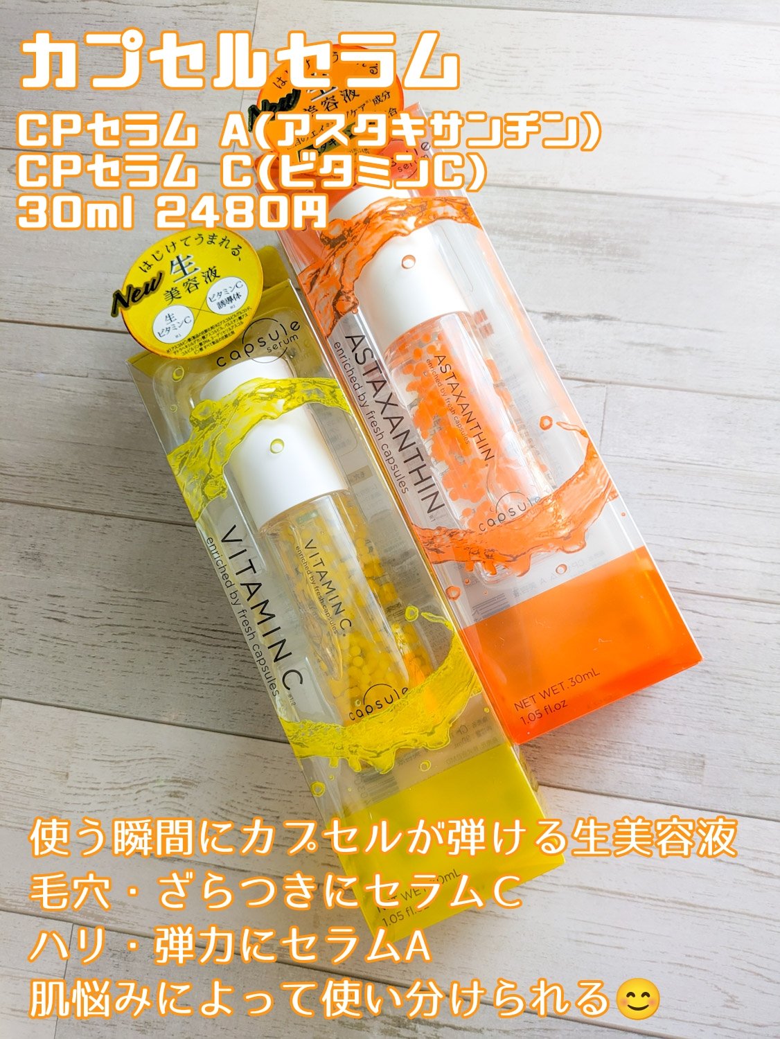 オレンジの水玉模様みたいになってて可愛らしいビジュアル でもこれ知れば知るほど奥深い工夫がいっぱい施されてる超技巧派だった…! 美容成分を”新鮮なまま”肌に届ける独自のカプセル製法💊 美容成分が詰まったカプセルが肌の上で弾け、一気に広がって馴染む、その感覚が凄く気持ちいい!! 保湿力もすごいので乾燥が気になる人にもぴったりだと思います☑️