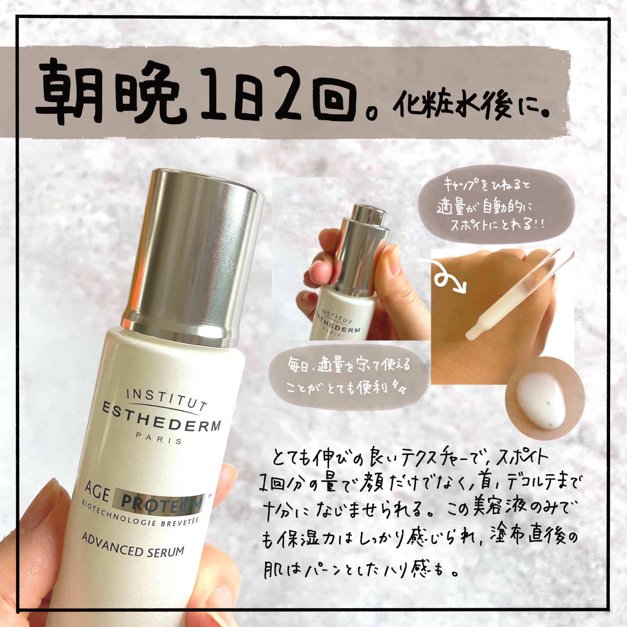 美肌の鍵となるプロテインに着目した美容液💫 1プッシュで1回分の量を取り出せるから使いやすいです♡ なめらかでみずみずしいテクスチャー。肌にスーッと素早く馴染みます。 高級感がある美容液なのでスキンケアへのモチベーションも上がる🥰