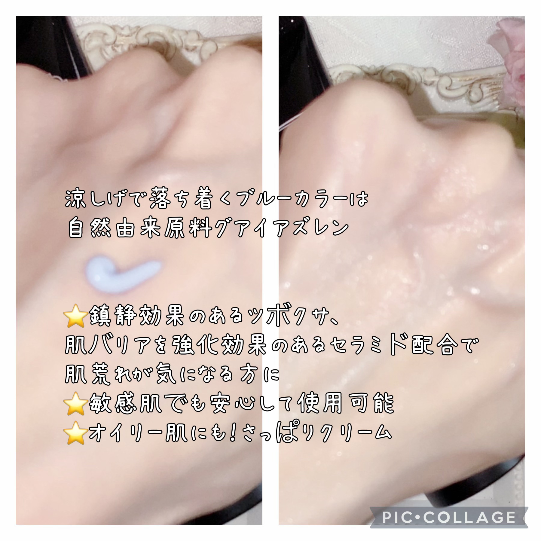 | 植物成分のグアイアズレンの色の綺麗な青色のクリーム。敏感な肌が感じる多様な刺激をケア | 詳細を見る | ||