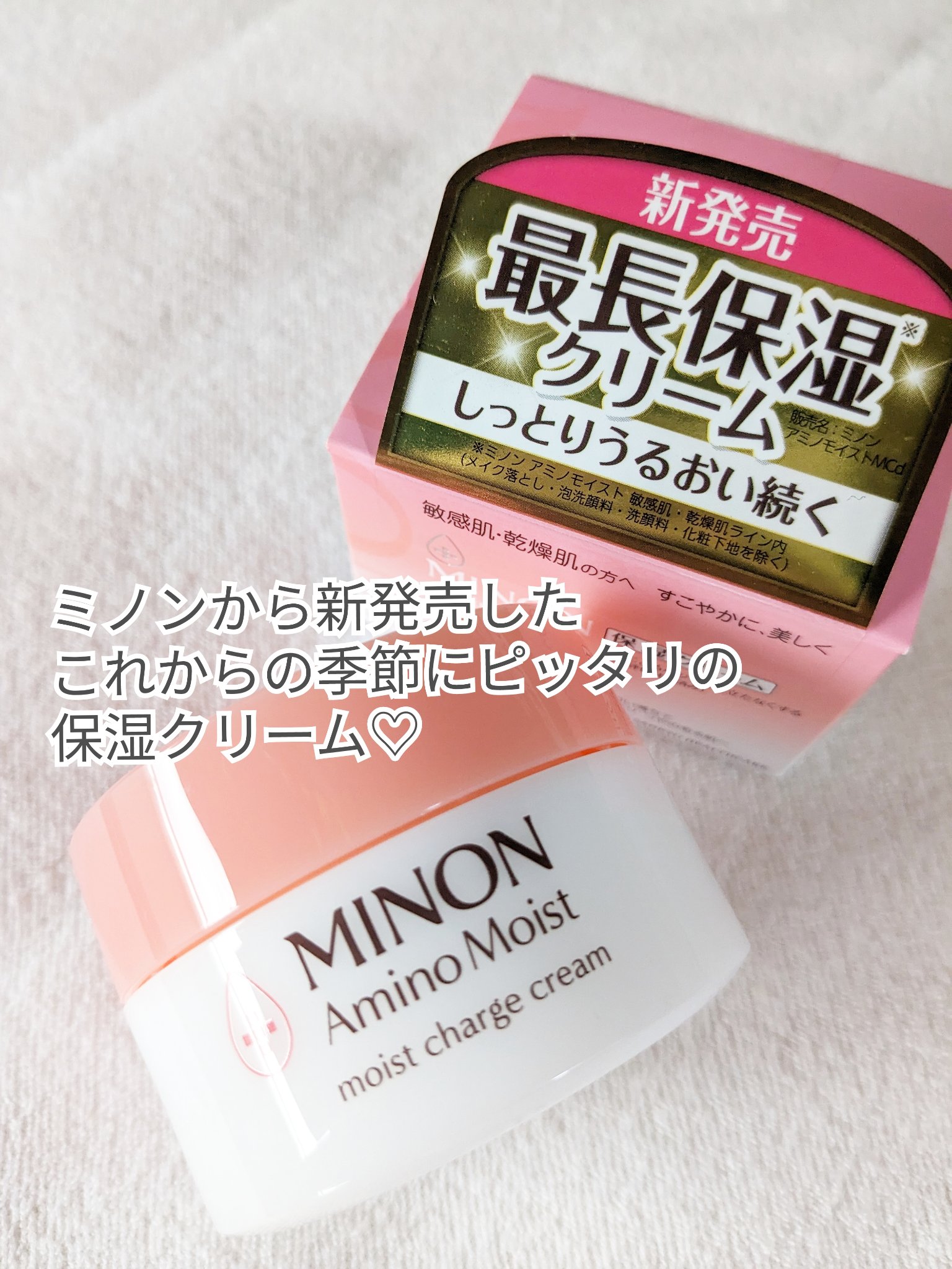 ミノンアミノモイストモイストチャージクリーム¥2,530敏感肌にも使える、こっくりとしたクリーム。朝晩、化粧水と乳液の後に、適量(直径1cm程度)を手のひらに出し顔全体に馴染ませます。こっくりしてるけど、するする伸びました。肌がしっとりして、...