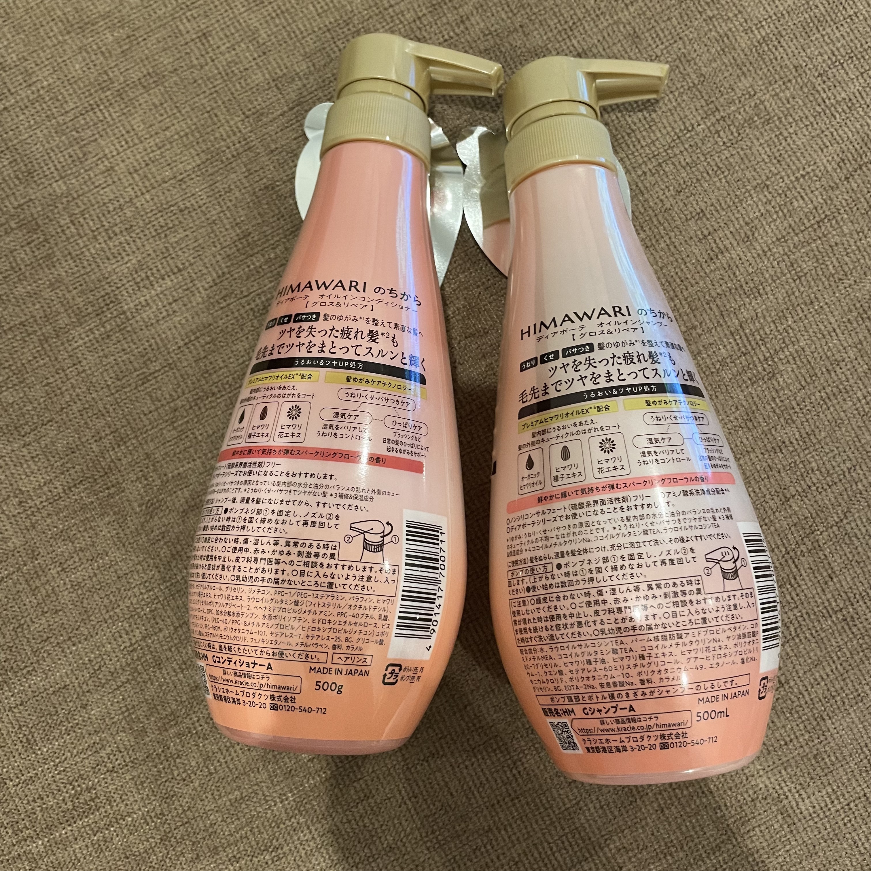- <シャンプー本体> 水、ラウロイルサルコシンTEA、パーム核脂肪酸アミドプロピルベタイン、コカミドメチルMEA、ココイルグルタミン酸TEA、ココイルメチルタウリンNa、ヤシ油脂肪酸PEG-7グリセリル、ヒマワリ種子油、ヒマワリ種子エキス、ヒマワリ花エキス、ポリクオタニウム-7、クエン酸、セテアレス-60ミリスチルグリコール、グアーヒドロキシプロピルトリモニウムクロリド、ポリクオタニウム-10、ポリクオタニウム-49、エタノール、塩化Na、グリセリン、BG、EDTA-2Na、安息香酸Na、香料、カラメル <コンディショナー本体> 水、ラウロイルサルコシンTEA、パーム核脂肪酸アミドプロピルベタイン、コカミドメチルMEA、ココイルグルタミン酸TEA、ココイルメチルタウリンNa、ヤシ油脂肪酸PEG-7グリセリル、ヒマワリ種子油、ヒマワリ種子エキス、ヒマワリ花エキス、ポリクオタニウム-7、クエン酸、セテアレス-60ミリスチルグリコール、グアーヒドロキシプロピルトリモニウムクロリド、ポリクオタニウム-10、ポリクオタニウム-49、エタノール、塩化Na、グリセリン、BG、EDTA-2Na、安息香酸Na、香料、カラメル <シャンプー詰替> 水、ラウロイルサルコシンTEA、パーム核脂肪酸アミドプロピルベタイン、コカミドメチルMEA、ココイルグルタミン酸TEA、ココイルメチルタウリンNa、ヤシ油脂肪酸PEG-7グリセリル、ヒマワリ種子油、ヒマワリ種子エキス、ヒマワリ花エキス、ポリクオタニウム-7、クエン酸、セテアレス-60ミリスチルグリコール、グアーヒドロキシプロピルトリモニウムクロリド、ポリクオタニウム-10、ポリクオタニウム-49、エタノール、塩化Na、グリセリン、BG、EDTA-2Na、安息香酸Na、香料、カラメル <コンディショナー詰替> 水、ラウロイルサルコシンTEA、パーム核脂肪酸アミドプロピルベタイン、コカミドメチルMEA、ココイルグルタミン酸TEA、ココイルメチルタウリンNa、ヤシ油脂肪酸PEG-7グリセリル、ヒマワリ種子油、ヒマワリ種子エキス、ヒマワリ花エキス、ポリクオタニウム-7、クエン酸、セテアレス-60ミリスチルグリコール、グアーヒドロキシプロピルトリモニウムクロリド、ポリクオタニウム-10、ポリクオタニウム-49、エタノール、塩化Na、グリセリン、BG、EDTA-2Na、安息香酸Na、香料、カラメル