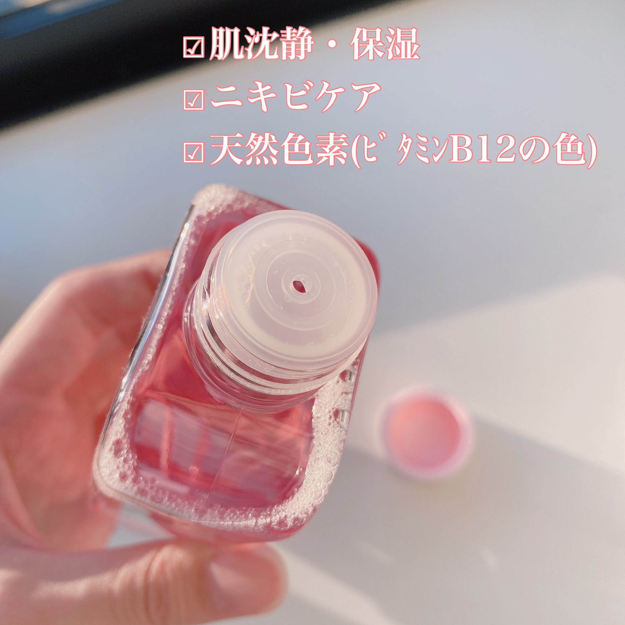 ピンクティーツリーとシカ成分によりニキビなどの荒れた肌をケア・予防☝️ このピンク色はビタミンB12成分の色です! さっぱりとしたシャバシャバテクスチャー。甘くフローラルな香りがします💐 たっぷり使ってお肌にうるおい補給を🫧 パケに中身までピンクで可愛いです🥹🎀