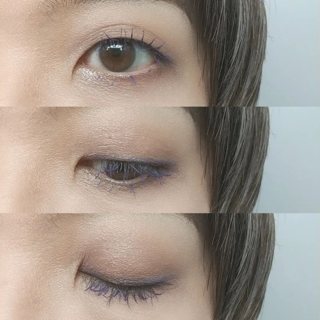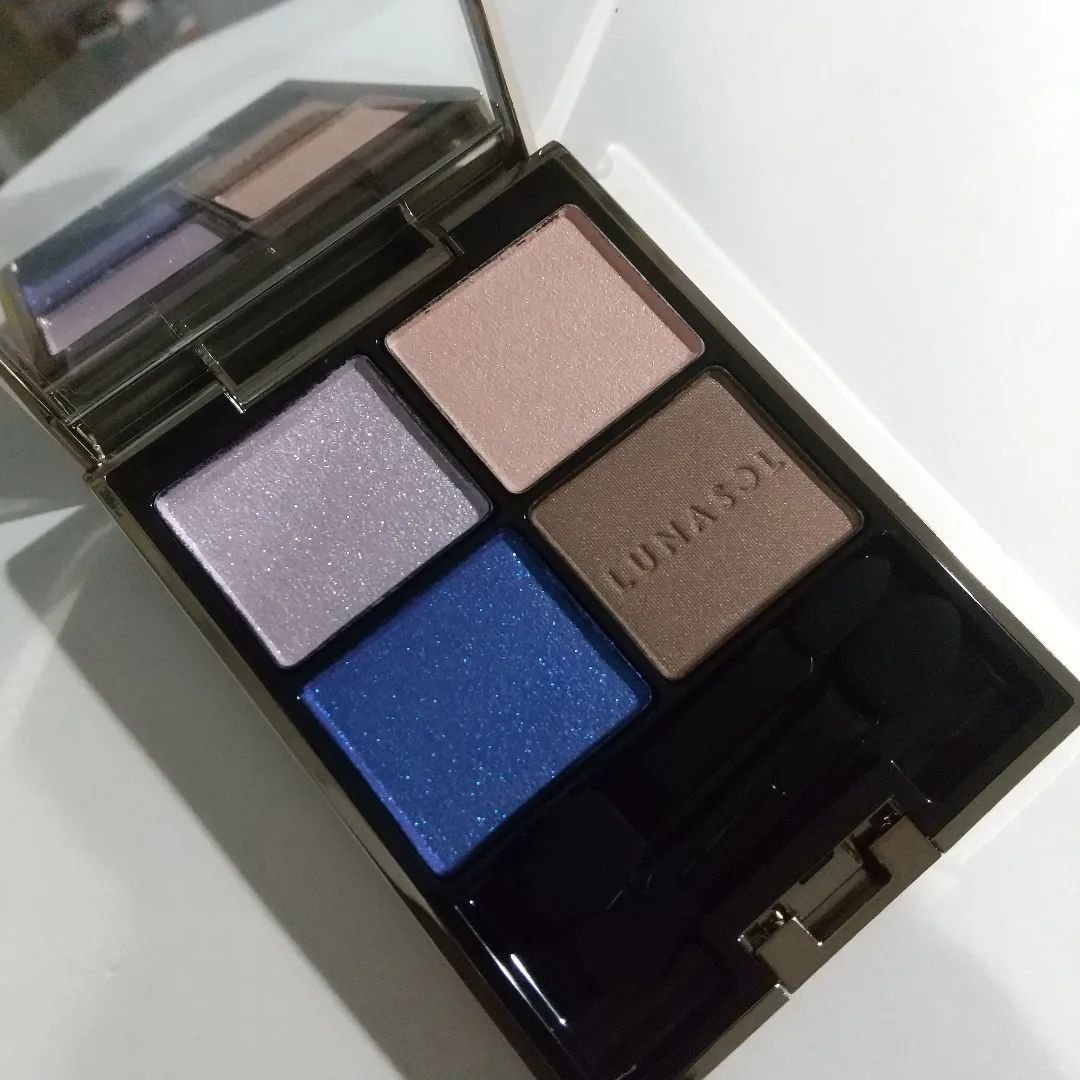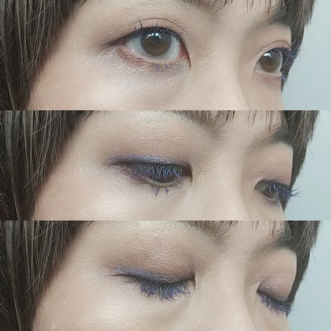 このひとつ前の限定の水色ミスティタイドも薄かったです‼️ でもブルーの方がまだ発色いいかも🤔最近のLUNASOLは発色よりも色のついたラメが主役みたいな感じですよね。ゴリゴリでいい感じにポイントになってます♥️