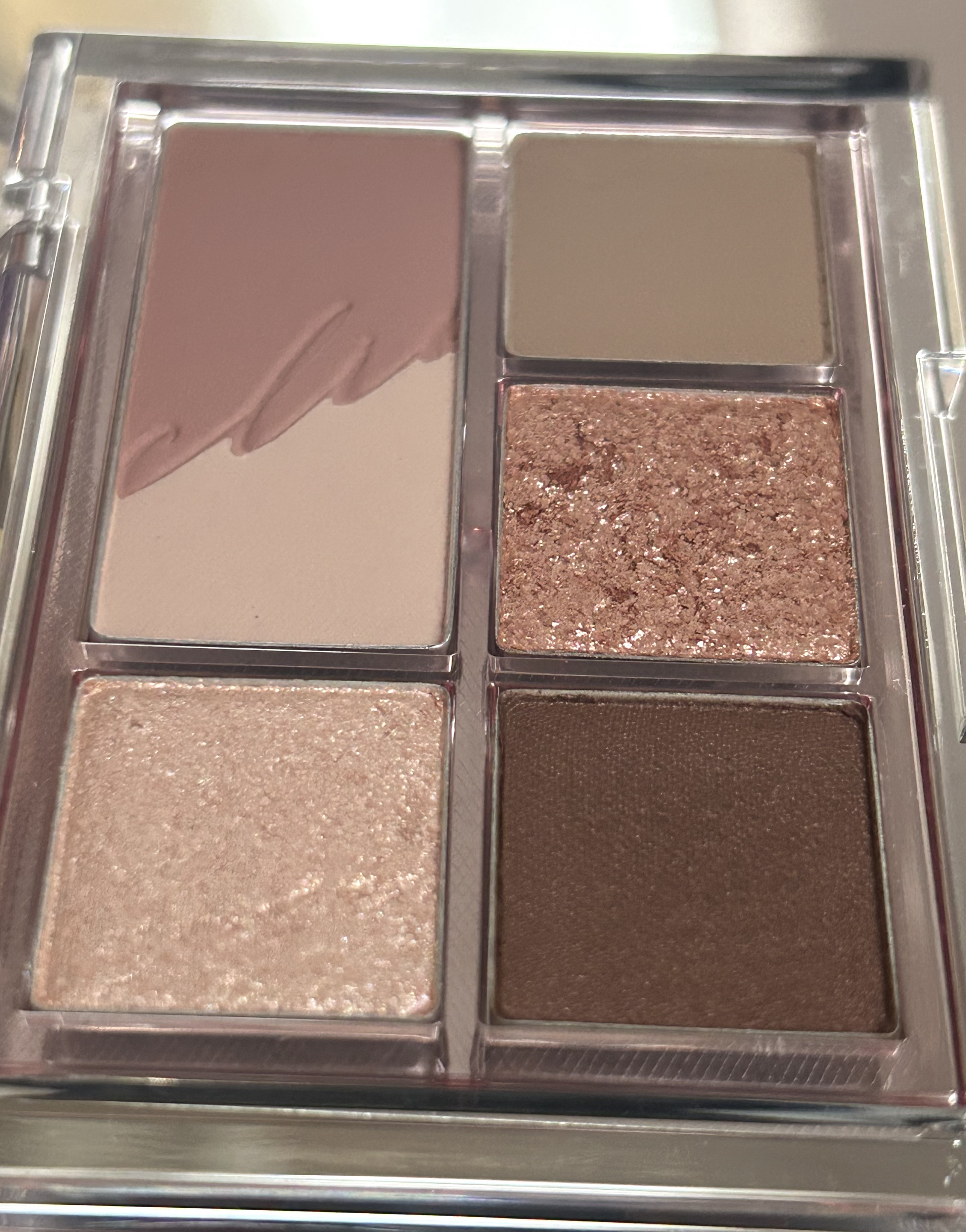 - 同系色陰影カラーと上品でクリアなグリッターの組み合わせの必要なカラーだけ詰め込んだミニアイパレット!