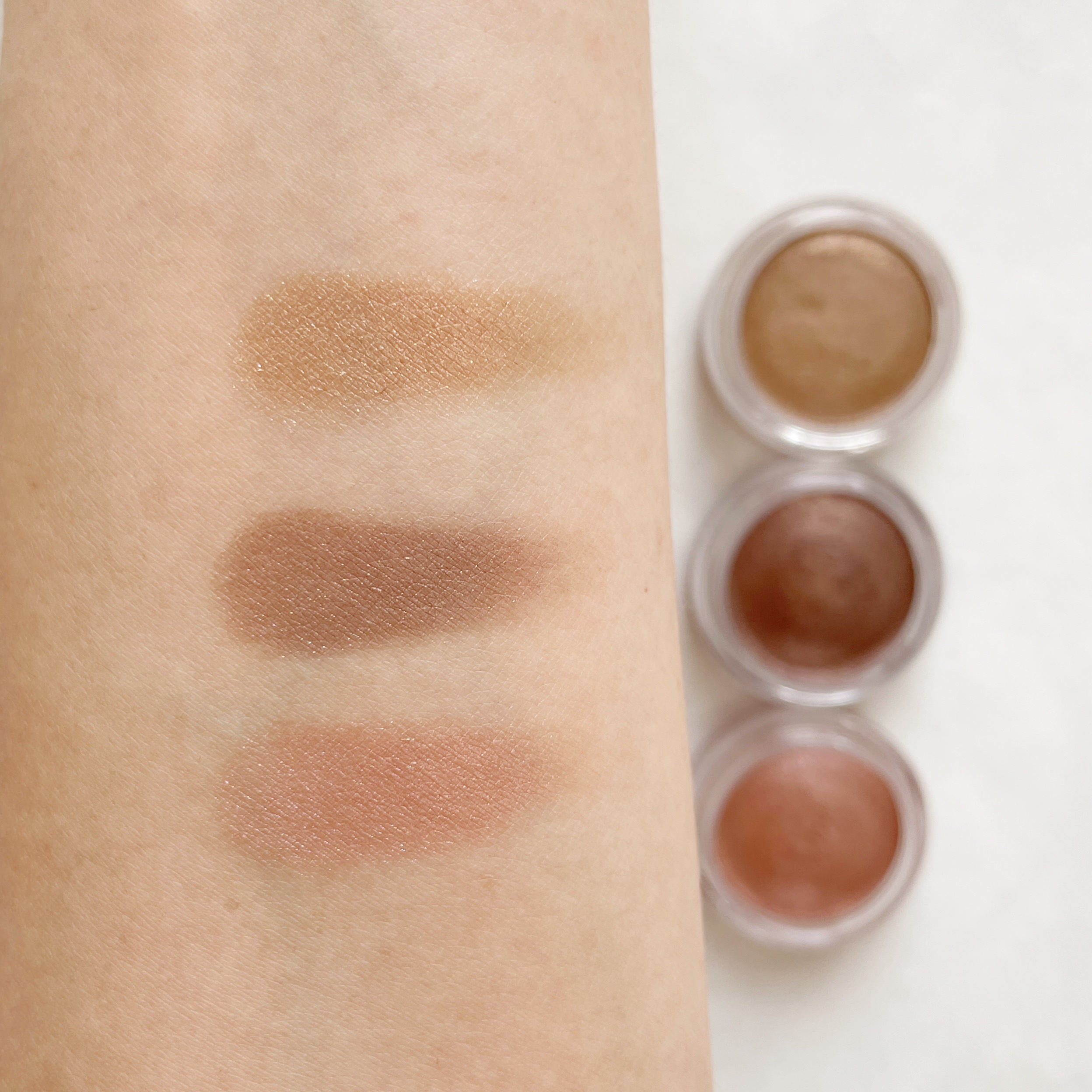 テクスチャーはクリームアイシャドウなので体温でジュワッと溶ける感じなのですが他社のクリームアイシャドウよりも柔らかめだなと感じました。 手で取ると少量でもすごく綺麗なラメ感が出るのでとにかくめちゃくちゃ可愛いです。 お肌に乗せた時の色と仕上がりにめちゃくちゃテンションが上がりました!ほんっっとに可愛いオレンジブラウン! 薄くのばして重ねてもあまりムラが気にならないのでパパッとメイクするときにも使えるしこれ単色でもすごく可愛い。 クリームアイシャドウの中ではまぶたの溝に溜まる量も少なめに感じました。もちろんほんのり溜まっちゃうんですがカラーのおかげもありあまり気にならないかな?という感じ。 カラーの可愛さに本当にびっくりしました。そしてクリームアイシャドウとしてもしっとり感と密着感のバランスが程よくてすごく使いやすく感じています。