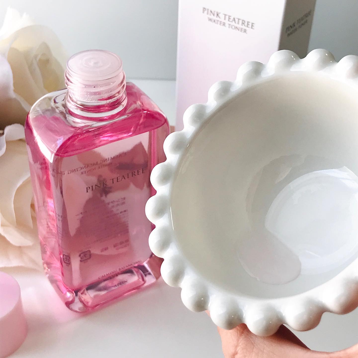 ティーツリーや、シカエキスを配合でニキビ、肌荒れ悩みをケアしてくれるトナー🩷 ピンク色は自然成分「ビタミンB12」本来の色だそう✨ サラサラテクスチャーで、さっぱりした使い心地✨