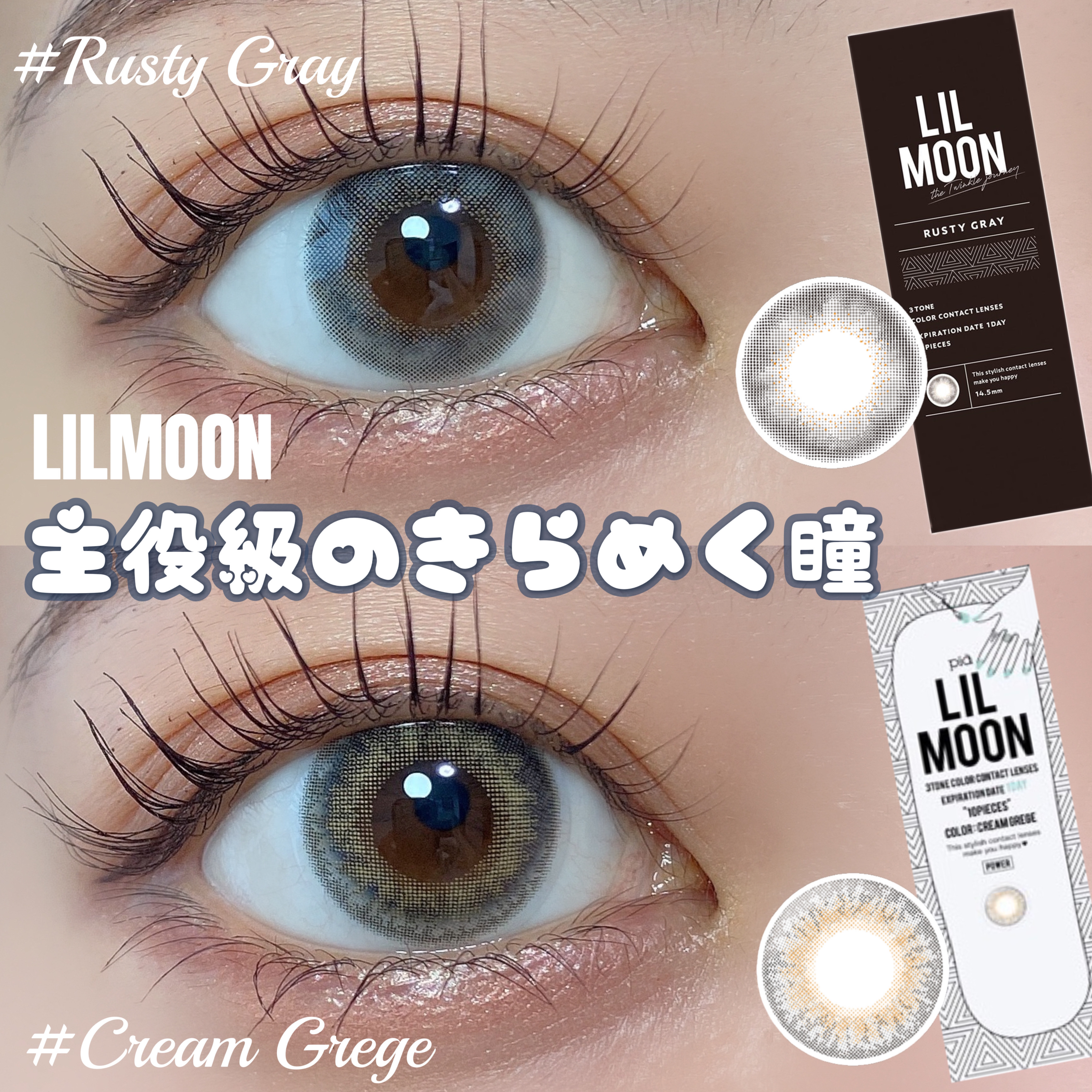 LILMOON˚✦今っぽちゅるんグレーカラコン🩶✔︎RustyGray#ラスティグレー¥1,980[リリーアンナ公式価格]深グレー×淡グレーで自然に立体感を演出じゅわっと瞳に溶け込み抜け感のある瞳に[DIA14.5|G.DIA13.5|B.C...