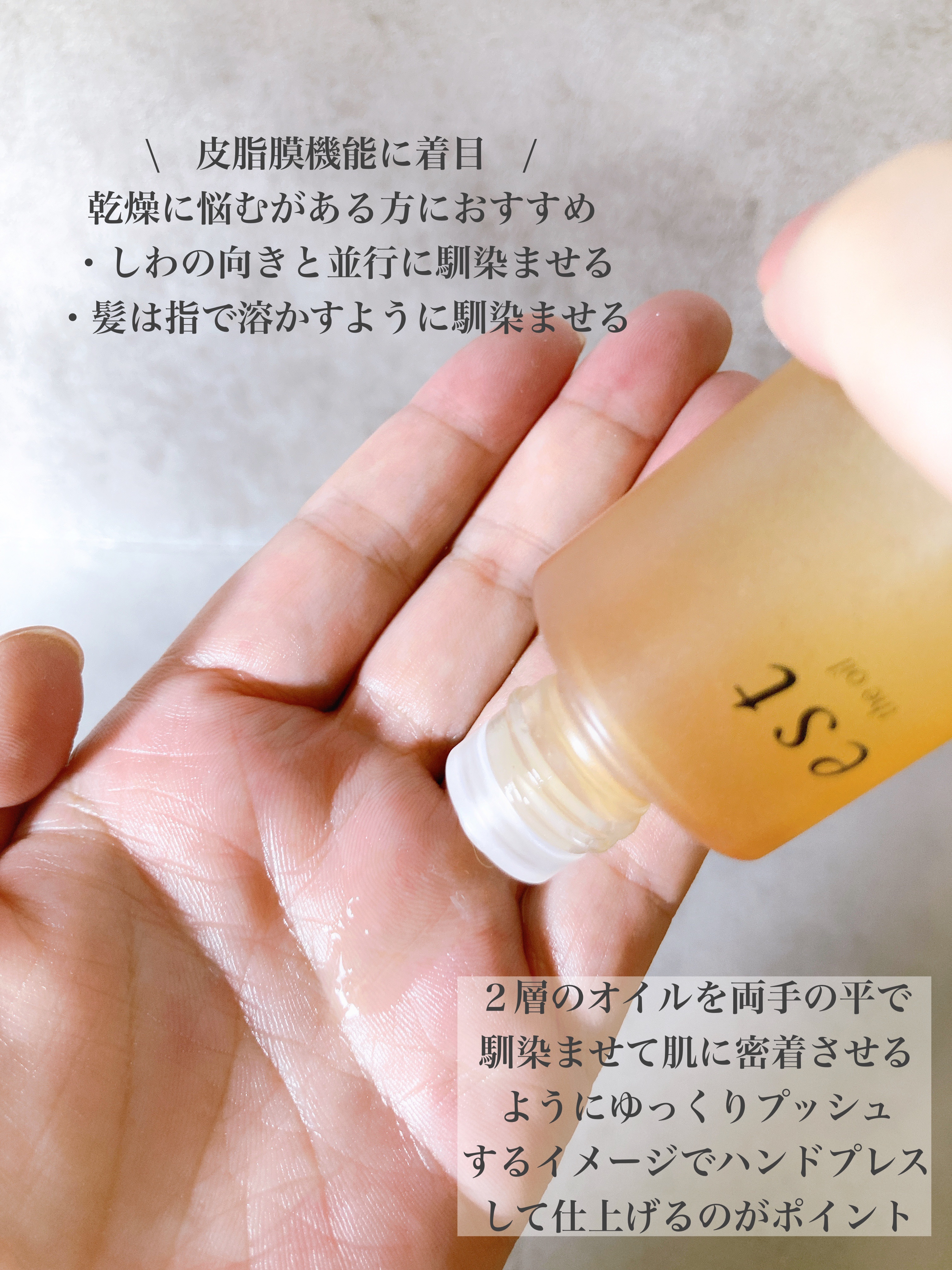 - 潤いのツヤが、あふれだす。 砂漠の生命※1に学んだオイル、登場。 砂漠の塩湖でも⾃らの⽔分を逃さない極限環境⽣物※1が⽣み出す成分「エクトイン」と、砂漠でも⽣き抜く植物から抽出した「ホホバオイル」の保湿力に着⽬。 与えた潤いを繋ぎとめるように、角層に水分が留まり長時間保湿します。 潤って光り輝くようなツヤ肌へ。 ● 砂漠の塩湖でも自らの水分を逃さない生物※1が生み出す成分「エクトイン」配合 ● 砂漠のような環境でも生き抜く植物から抽出した「ホホバオイル」配合 ● 髪や爪、ボディにも使えます ● 生命感を感じさせるフローラルブーケの香り ※1エジプトの塩湖で発見されたHalomonas elongate