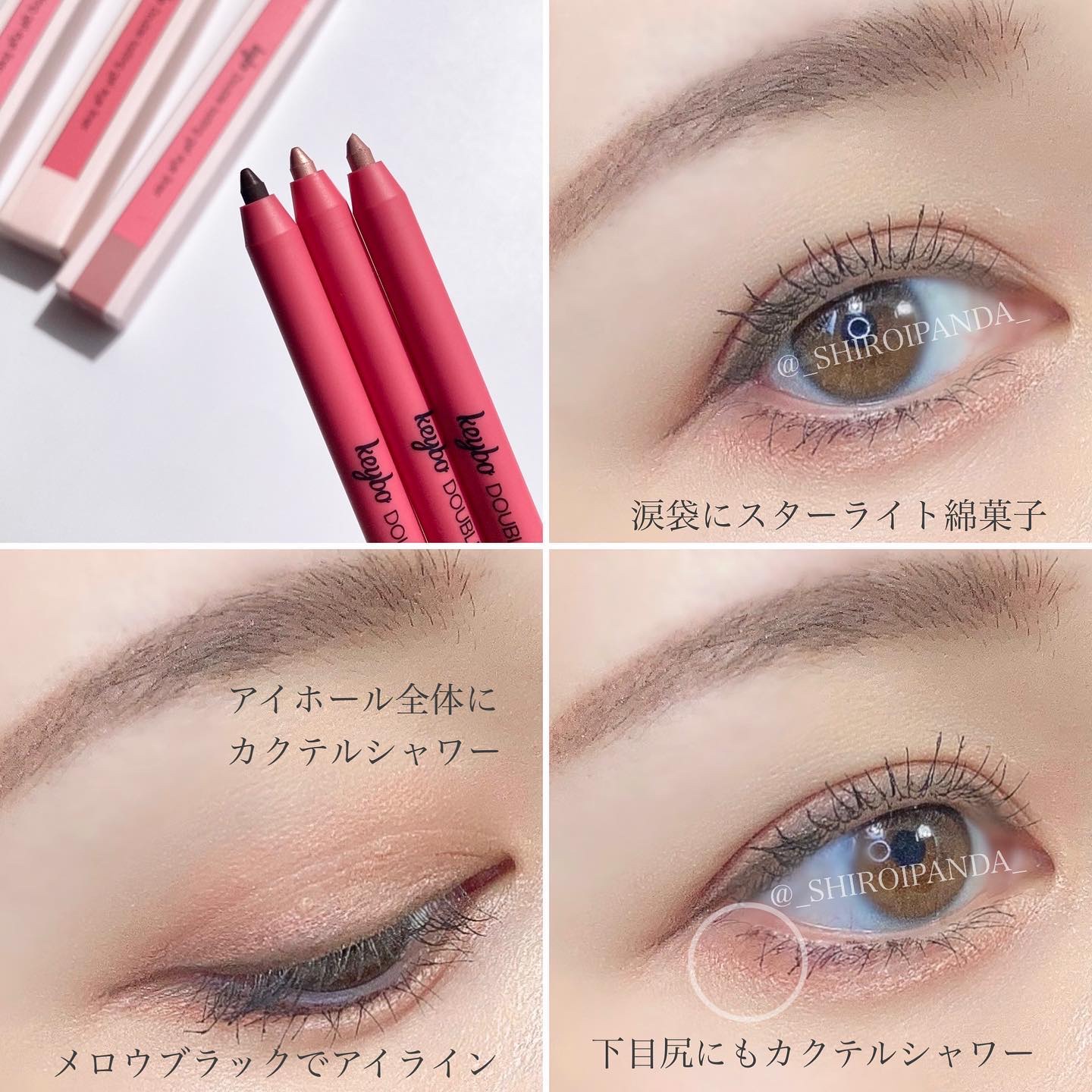 柔らかくなめらかな描き心地でスルスル描けて擦っても全然ヨレなくてぴたっと密着してくれます✨ ミルクブラウンをアイホール全体に塗ってメロウブラックをアイライナーにムーンライトオーロラを涙袋にメイクしてみました! 他のカラーもかわいくて豊富なのでぜひチェックしてみてください✔