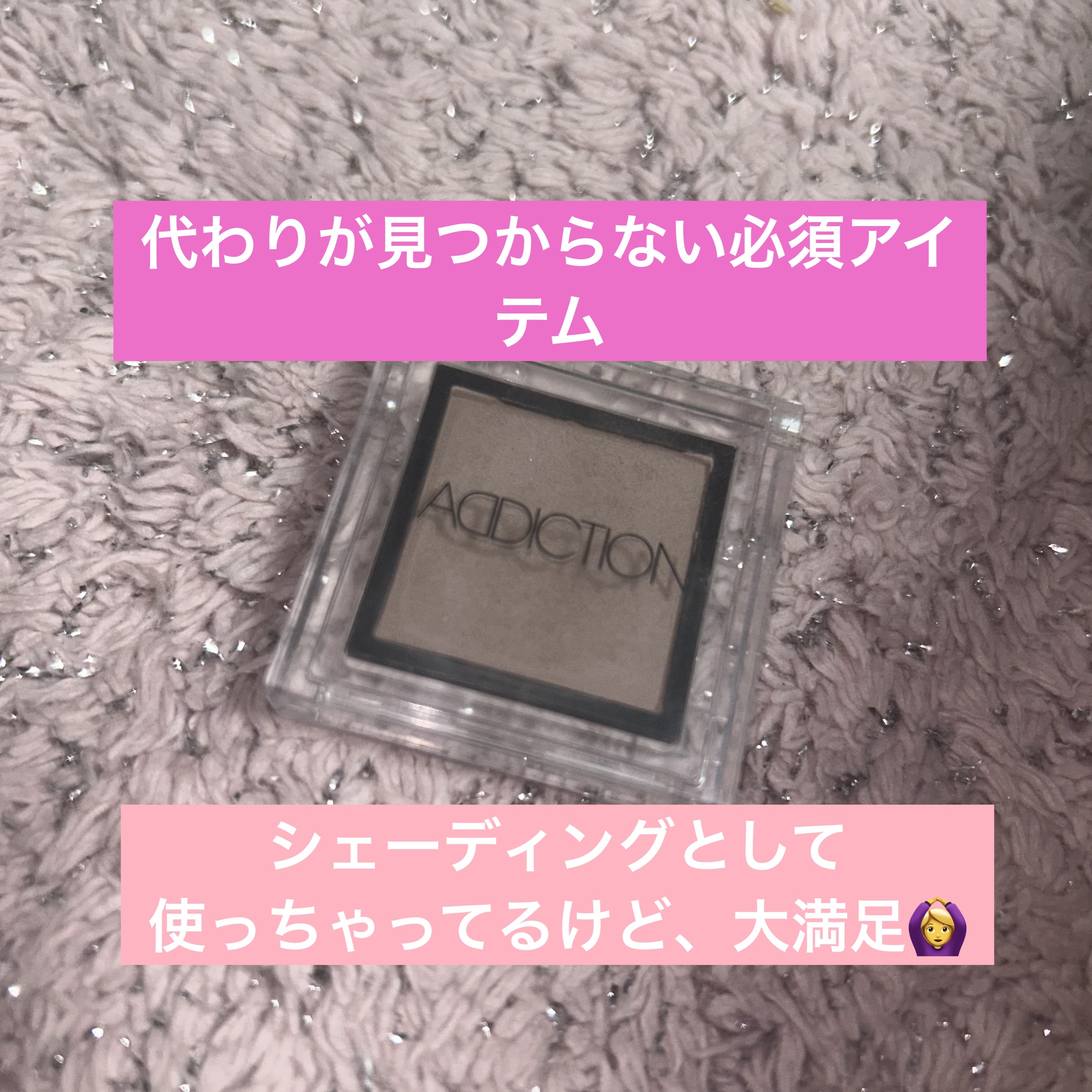 ADDICTIONの単色アイシャドウです❁⃘*.゚ パールという質感でラメ感が強すぎないのでベースとしても使えます。 めちゃめちゃ可愛くてこれ単体でも使いたくなります♡ これに同じくADDICTIONのスパークルという質感のものを重ねるとさらに可愛くなります♪