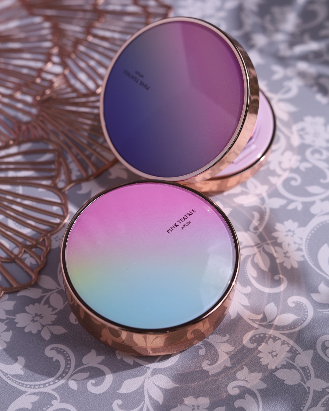 混合肌や敏感肌におすすめのピンクティーツリーカバープライマークッション カラーは『21号』を使用しました! SPF50+ PA++++の高UVカットのクッションファンデーション うるおい感がありながら、ピタッと肌に密着してくれるテクスチャ