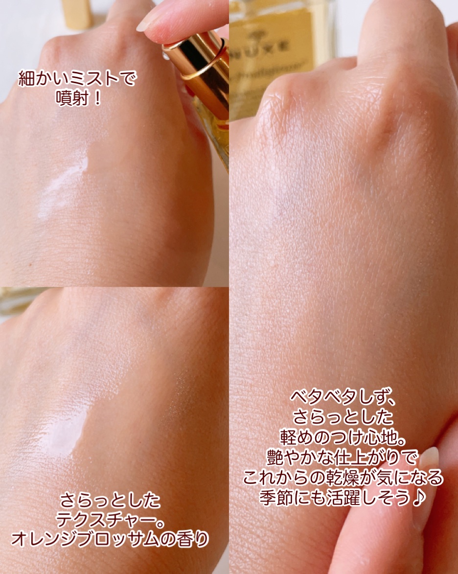 - <50ml> (カプリル酸/カプリン酸)ヤシアルキル、マカデミア種子油、ジカプリリルエーテル、トリ(カプリル酸/カプリン酸)グリセリル、アーモンド油、ヘーゼルナッツ種子油、ユチャ種子油、香料、ツバキ種子油、アルガニアスピノサ核油、ルリジサ種子油、トコフェロール、ヒマワリ種子油、酢酸トコフェロール、ローズマリー葉エキス、ジイソステアリン酸ポリグリセリル-3、水、アスコルビン酸、トマト果実エキス <100ml> (カプリル酸/カプリン酸)ヤシアルキル、マカデミア種子油、ジカプリリルエーテル、トリ(カプリル酸/カプリン酸)グリセリル、アーモンド油、ヘーゼルナッツ種子油、ユチャ種子油、香料、ツバキ種子油、アルガニアスピノサ核油、ルリジサ種子油、トコフェロール、ヒマワリ種子油、酢酸トコフェロール、ローズマリー葉エキス、ジイソステアリン酸ポリグリセリル-3、水、アスコルビン酸、トマト果実エキス <限定ボトル 100ml> (カプリル酸/カプリン酸)ヤシアルキル、マカデミア種子油、ジカプリリルエーテル、トリ(カプリル酸/カプリン酸)グリセリル、アーモンド油、ヘーゼルナッツ種子油、ユチャ種子油、香料、ツバキ種子油、アルガニアスピノサ核油、ルリジサ種子油、トコフェロール、ヒマワリ種子油、酢酸トコフェロール、ローズマリー葉エキス、ジイソステアリン酸ポリグリセリル-3、水、アスコルビン酸、トマト果実エキス
