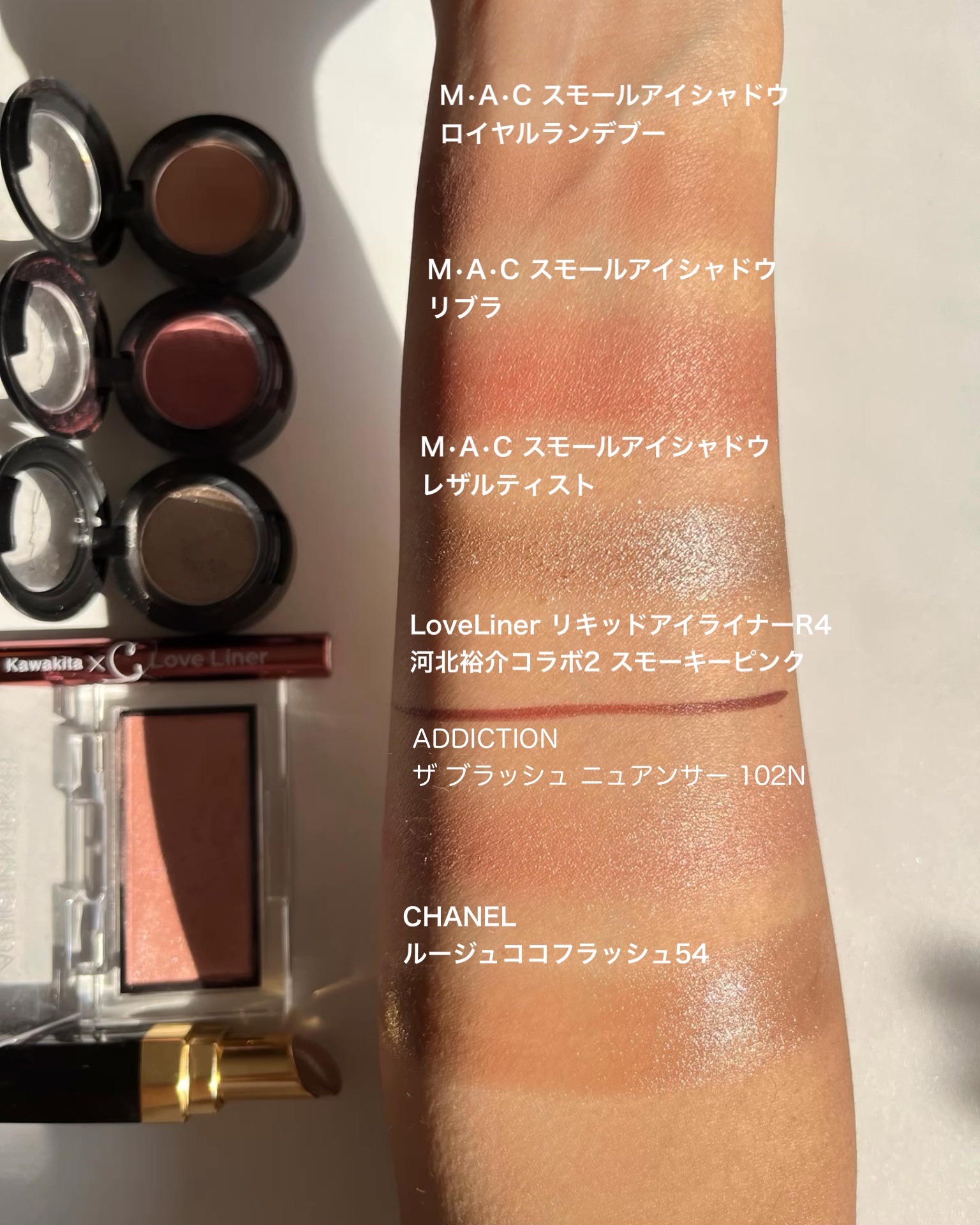⚑⚐2020.5.2・今日は#celvoke#ヴォランタリーアイズ14種類のスウォッチです✨・いま店頭に見に行けないのでポチっとする方の参考になれば嬉しいです✨・・✔︎右側上から07タン08マットベージュ09ローシェンナ10エクルベージュ15...