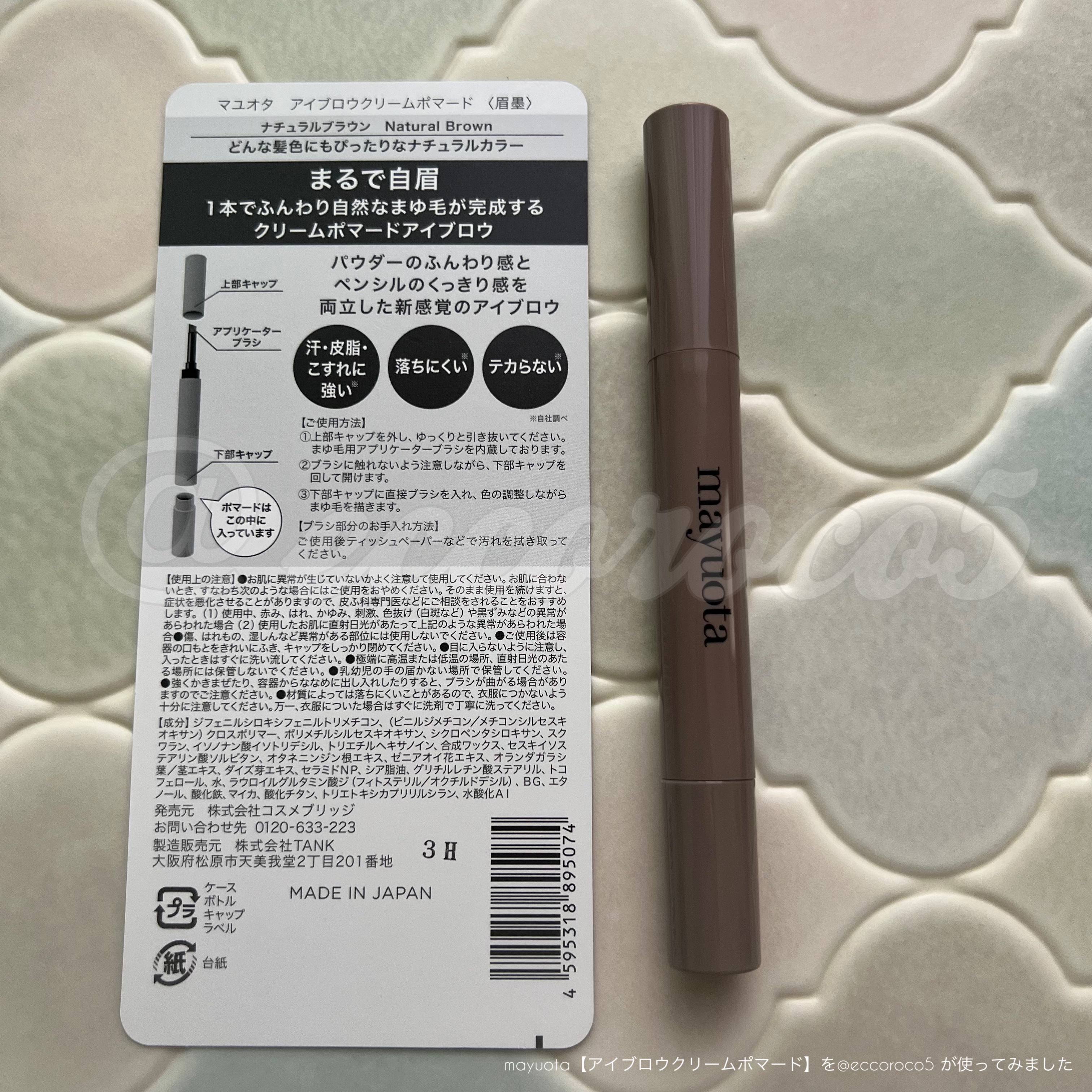 - 簡単にまゆ毛が描けて自然!朝描いたまゆ毛が長時間続く。時短MAXのアイブロウクリームポマード 簡単に眉メイクが完成する クリームポマードアイブロウ マットな仕上がり自然にまゆ毛の隙間を埋める クリームベースのアイブロウカラー 本体一体化ブラシが描きやすく、 想像以上に簡単に眉メイクが描ける アイブロウ専用アイテム