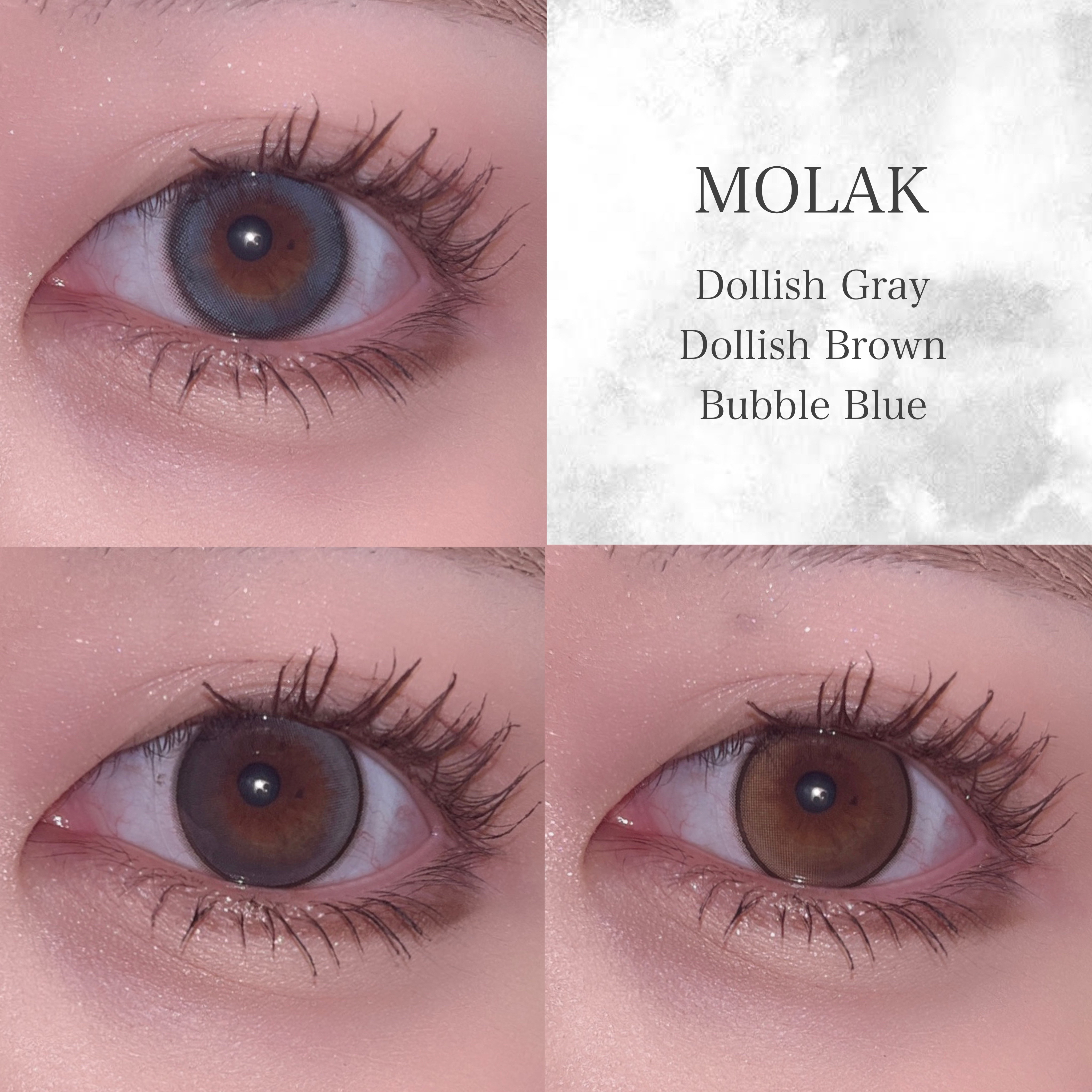 MOLAKの人気カラーから乱視カラコン登場✨ 細フチで目元を強調しつつ、水光デザインでちゅるんとした瞳に🫧 抜け感が出て柔らかい印象😌 明るすぎないグレーの色味に、着色直径が12.8mmなのでデイリー使いしやすいなと感じました🎈