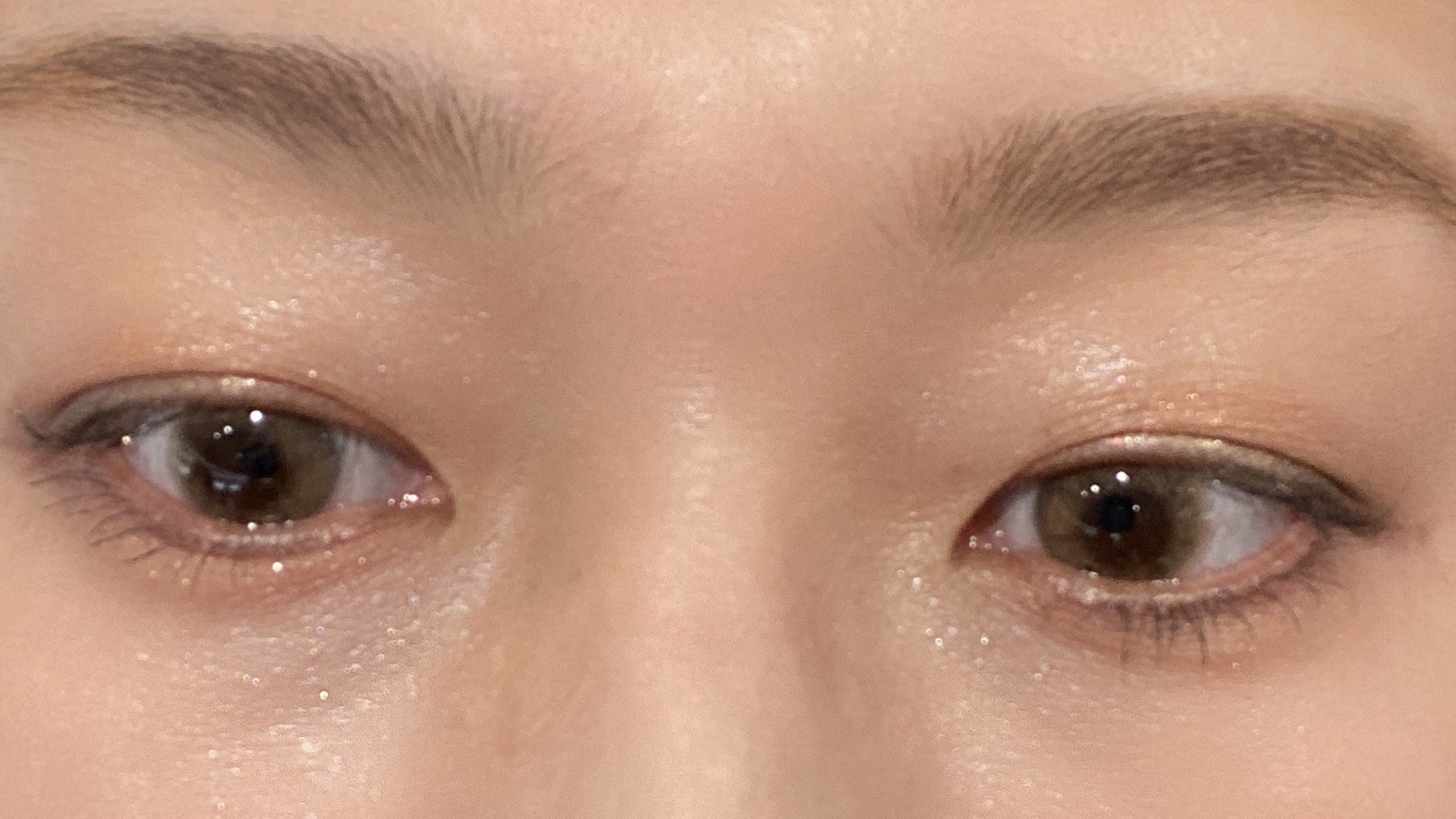 深みグリーンのアーバニスタに、ダズルタイプのピュアクライとダンスホール。 ピュアクライはホワイト?アイボリー?系のカラーに見せかけてピンクっぽさのある大粒ラメ。 アーバニスタを上まぶたにグラデーション、下まぶたの際にも。