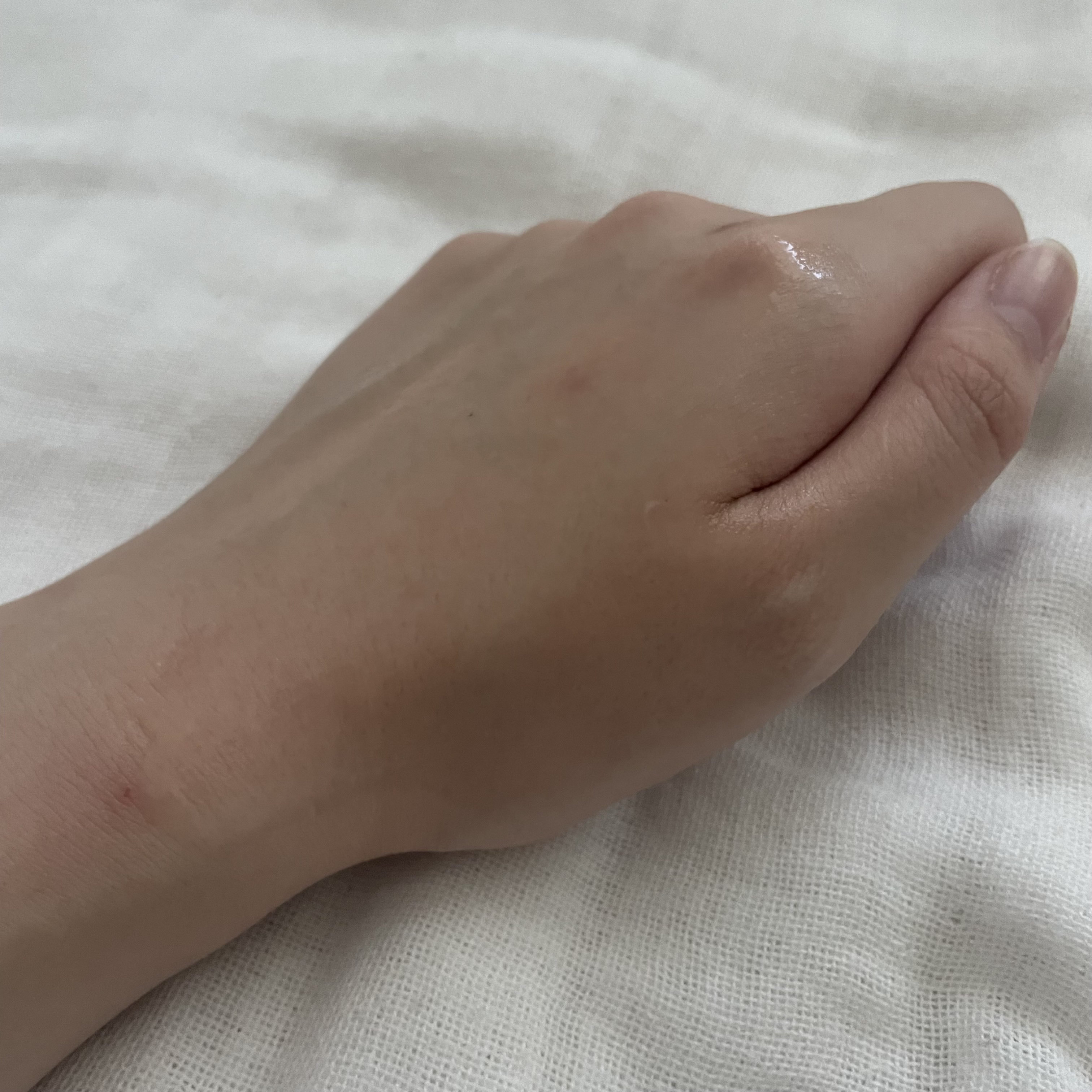 手にとってみた時のテクスチャーは既存のウォータースプラッシュサンクリームと比べると若干重めに感じましたが、肌に馴染ませると変わらず伸びが良いです! まず試しに手に塗ってみた時点で自然なツヤ感とトーンアップ効果に感動✨✨ファンデせずにこれだけでも肌を綺麗に見せてくれます! もちろん顔にも使ってみましたが、セラミド、ペプチド配合で保湿力もアップしたとのことでしたが、朝塗って夜まで乾燥が気になりませんでした! 皮膚科テスト完了、ヴィーガン認証もされているので、敏感肌でも安心して使えます。 そして、既存のタイプに比べてマイルドな香りになった気がします!私は前の香りも好きでしたが、こちらはさらにふんわりとやさしく香ります。