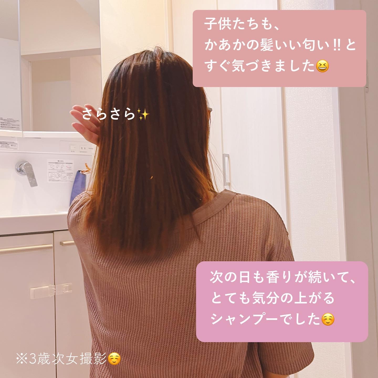 ふんわり甘い香りがして、 しっとり髪に浸透していく感じがしました⭐️ 私が普段ヘアオイルを使っているからか、翌日少し髪が広がった…感じがしました💦 ボリュームが欲しい人には良いのかな?と思いました☺️