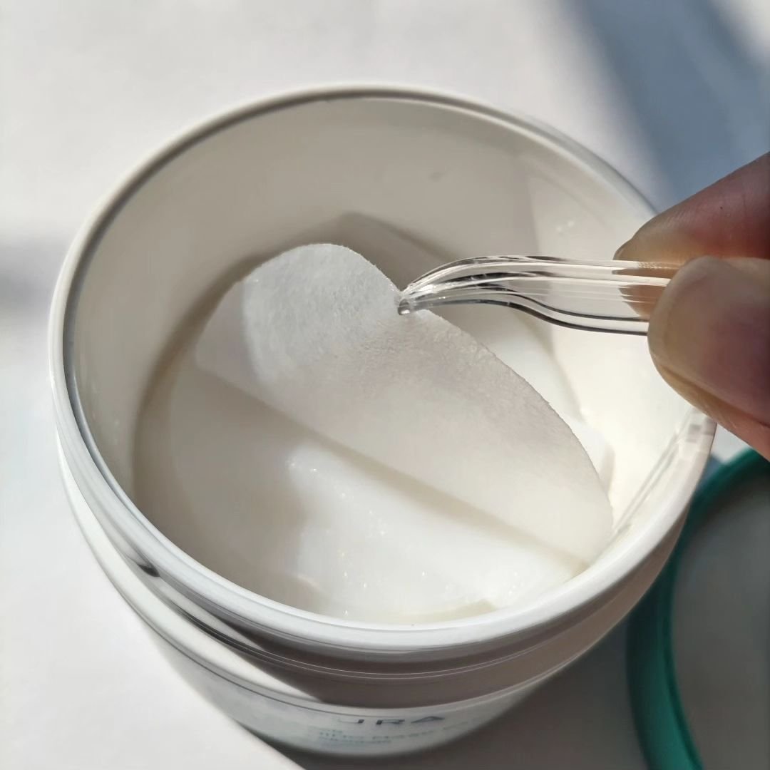 やさしく角質ケアをしながら鎮静・保湿できるエンボス仕様のトナーパッド 厚めのパッドで一枚一枚に美容液がひたひたにたっぷりついている 肌につけると気持ちよくてシカエッセンスはさっぱりとした使用感♡