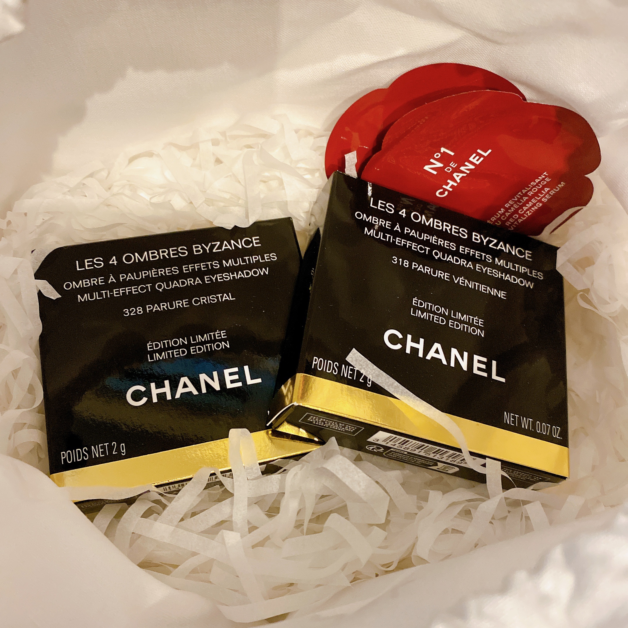 CHANELレキャトルオンブルビザンス328パリュールクリスタル限定品です😊CHANELって限定品いっぱい在庫あるらしいんだけど、こちらは人気で欠品してる店舗あったイメージです✋CHANELのアイシャドウって発色強めのものが多い印象だったんだ...