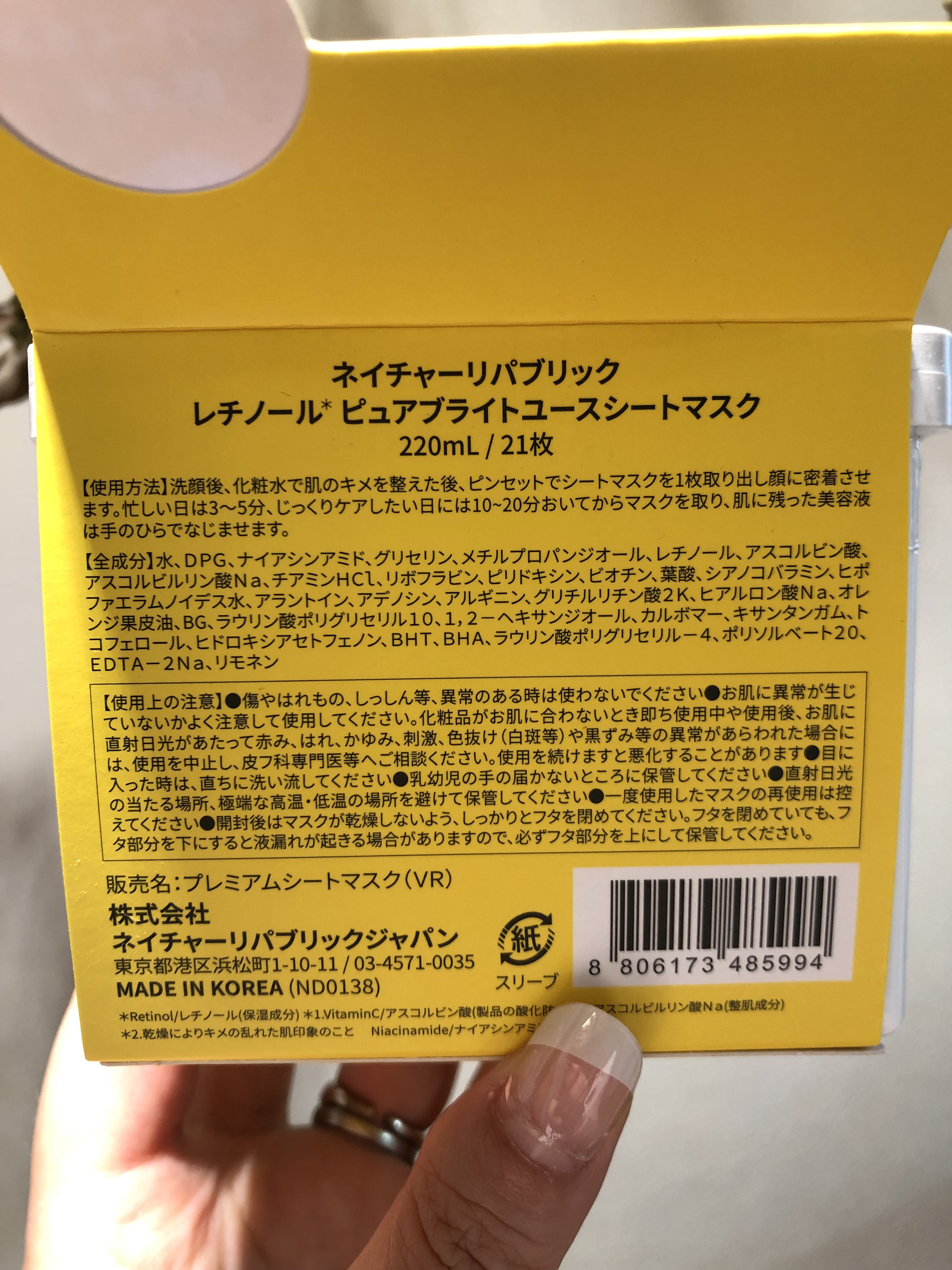 商品詳細情報ネイチャーリパブリック キューブマスク レチノール