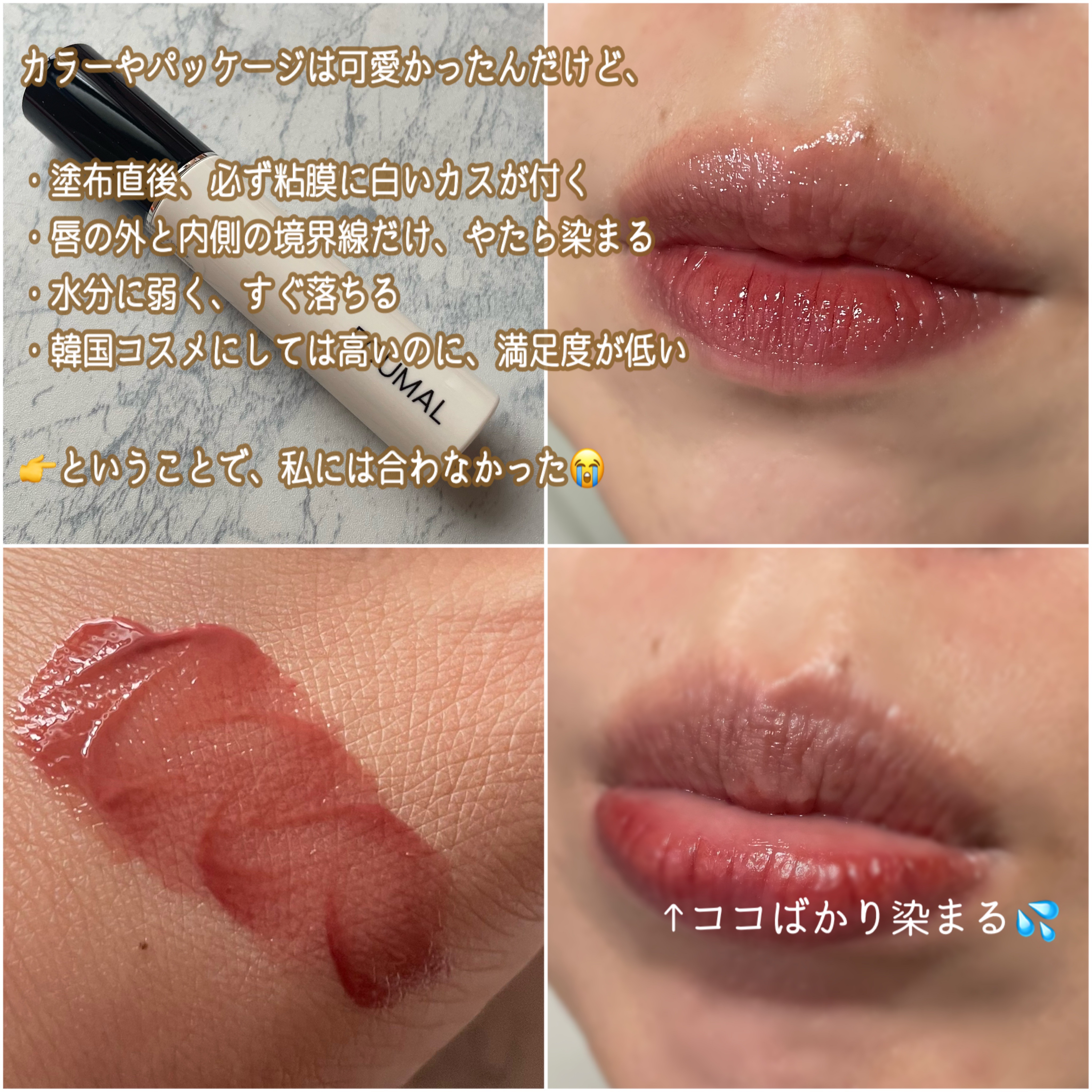 - 韓国のビューティー系インフルエンサー、LAMUQUE(ラミュク)さんが手掛けるブランド「EQUMAL(エクマル)」のティントリップ。 オイル膜が水分ティントを包み込み、みずみずしくツヤのある仕上がりをキープします。 時間が経過するほど透明感が増し、ツヤっとした質感が引き立ちます! ✓40%の水分量とローズリップオイルを配合 ✓ グラッシーグロウフィニッシュ:美しい発色&立体的&透明感溢れる仕上がり ✓ 革新的な使い心地:唯一無二の『シグネチャーリップスプレッダー』 →カラーを均一に密着させた後にグレーザーで唇の外側をぼかすと簡単にグラデーションリップ出来上がり! ✓ ベタつかずに時間が経つとともに浮かんでくるオイルの艶感!潤いとツヤを一日中キープ!