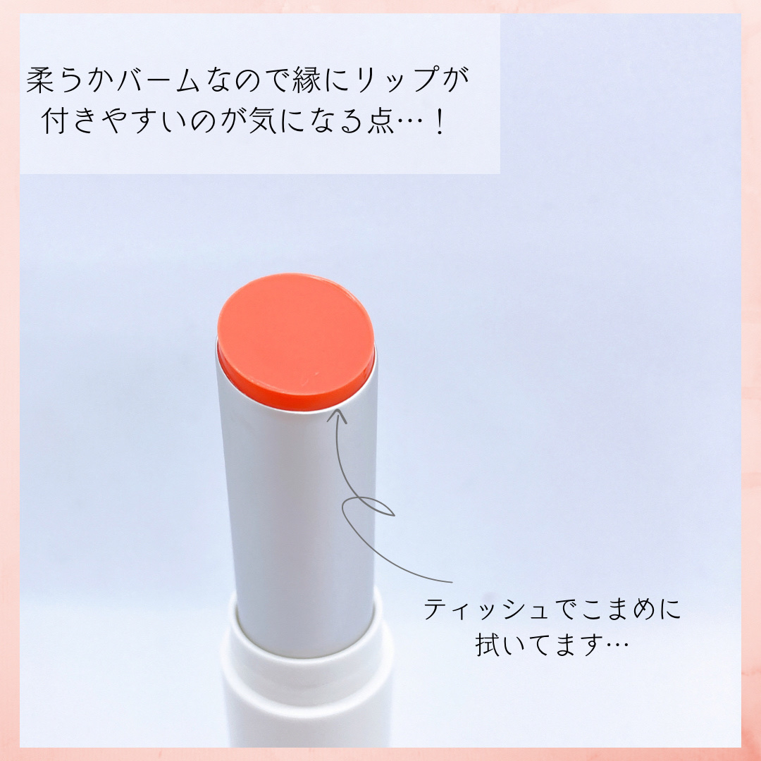 元の唇に自然な血色感を与えてくれる!! どんな場面でも使いやすいから一番のお気に入り🤩 めーーっちゃ自然なピンク!! 元の唇の血色感が強い人はあまり変化を感じないかも…!! 血色がない人は、元からこの唇ですよ?って感じの自然なピンクになるからスクールメイクにおすすめ!! 他の2色とは違って落ち着きのあるオレンジブラウン!! 03番陽炎をクリアにしたようなカラー! 陽炎を愛用している方にはかなりおすすめ🫶