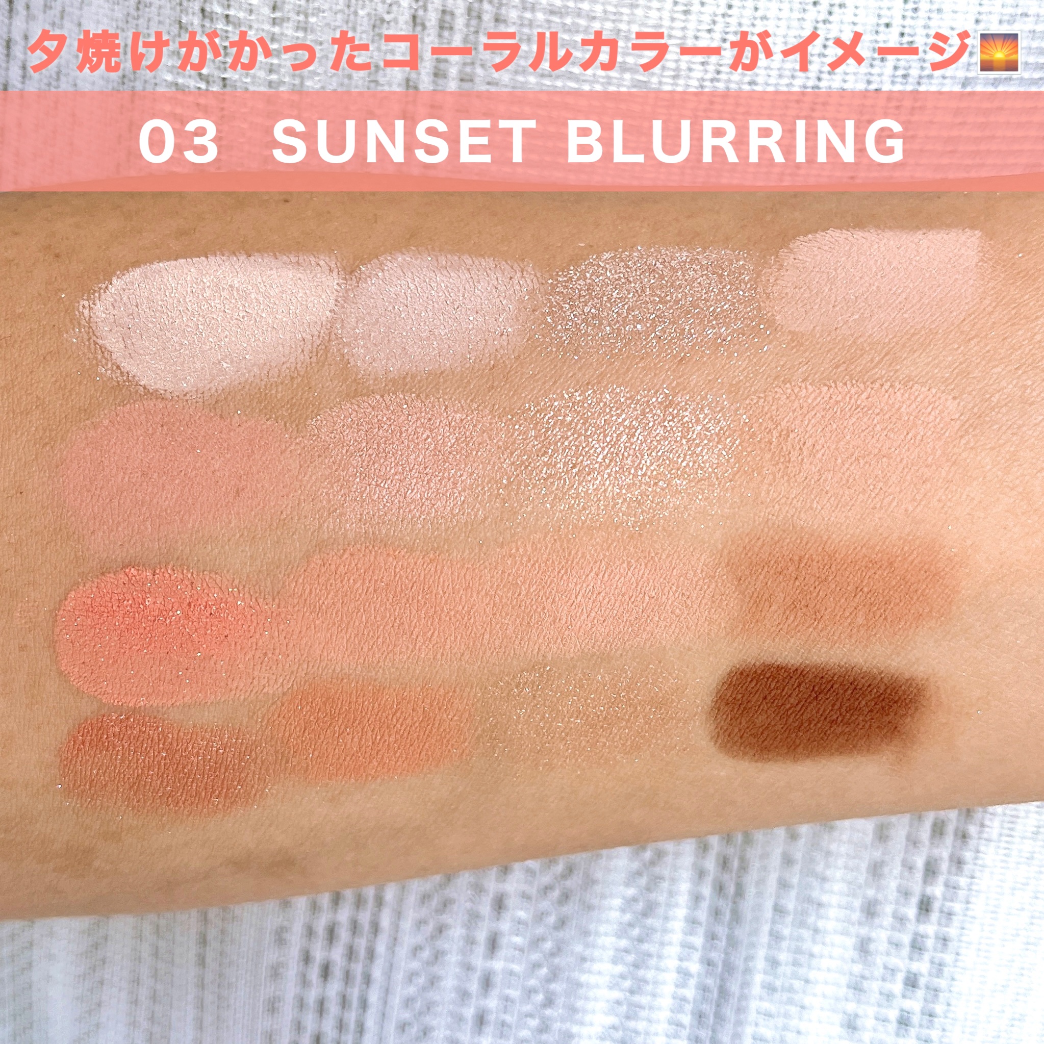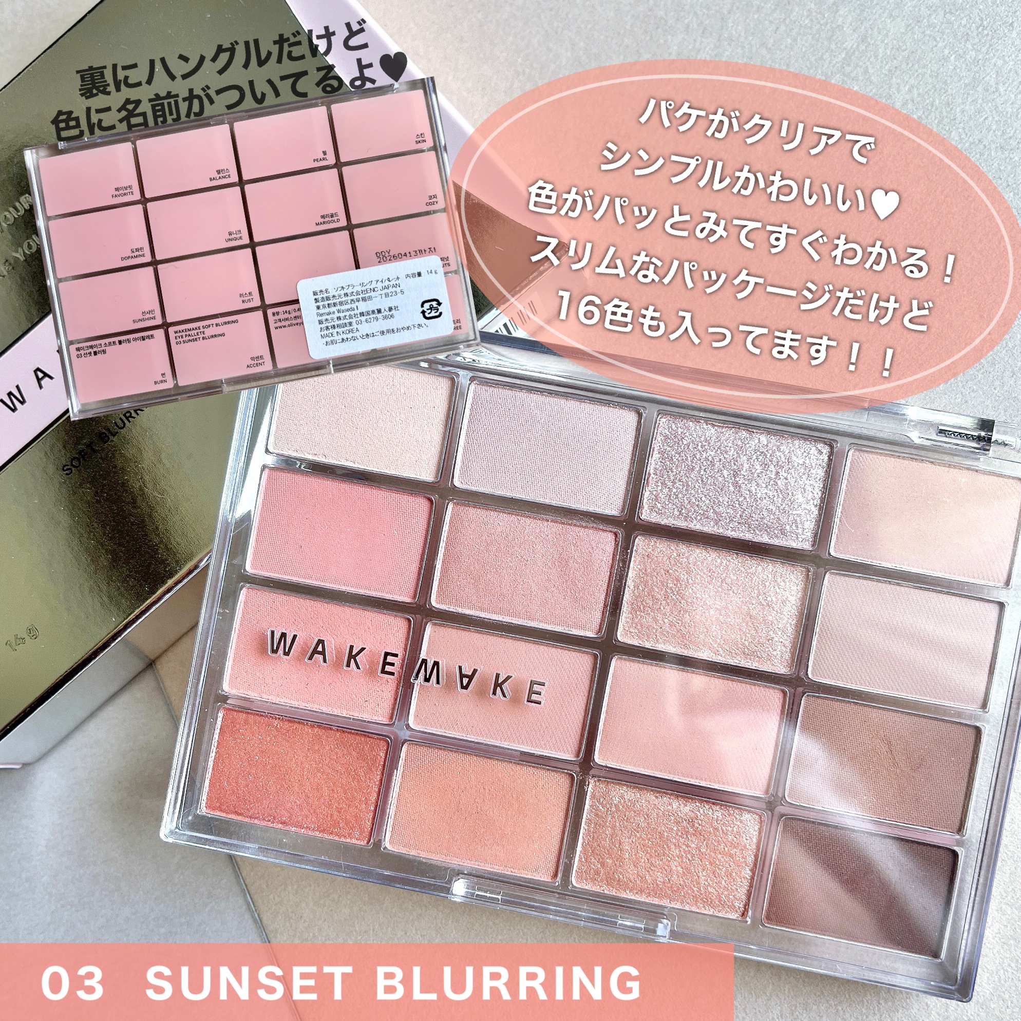 wakemakewakemakeソフトブラーリングアイパレット03サンセットブラーリング2,970円コーラル×オレンジ×ブラウン×ラメ系の全16色入っていて夏の間めちゃくちゃ愛用しました😍マット、ラメ、グリッターと豊富に入っていて、困ったら縦...