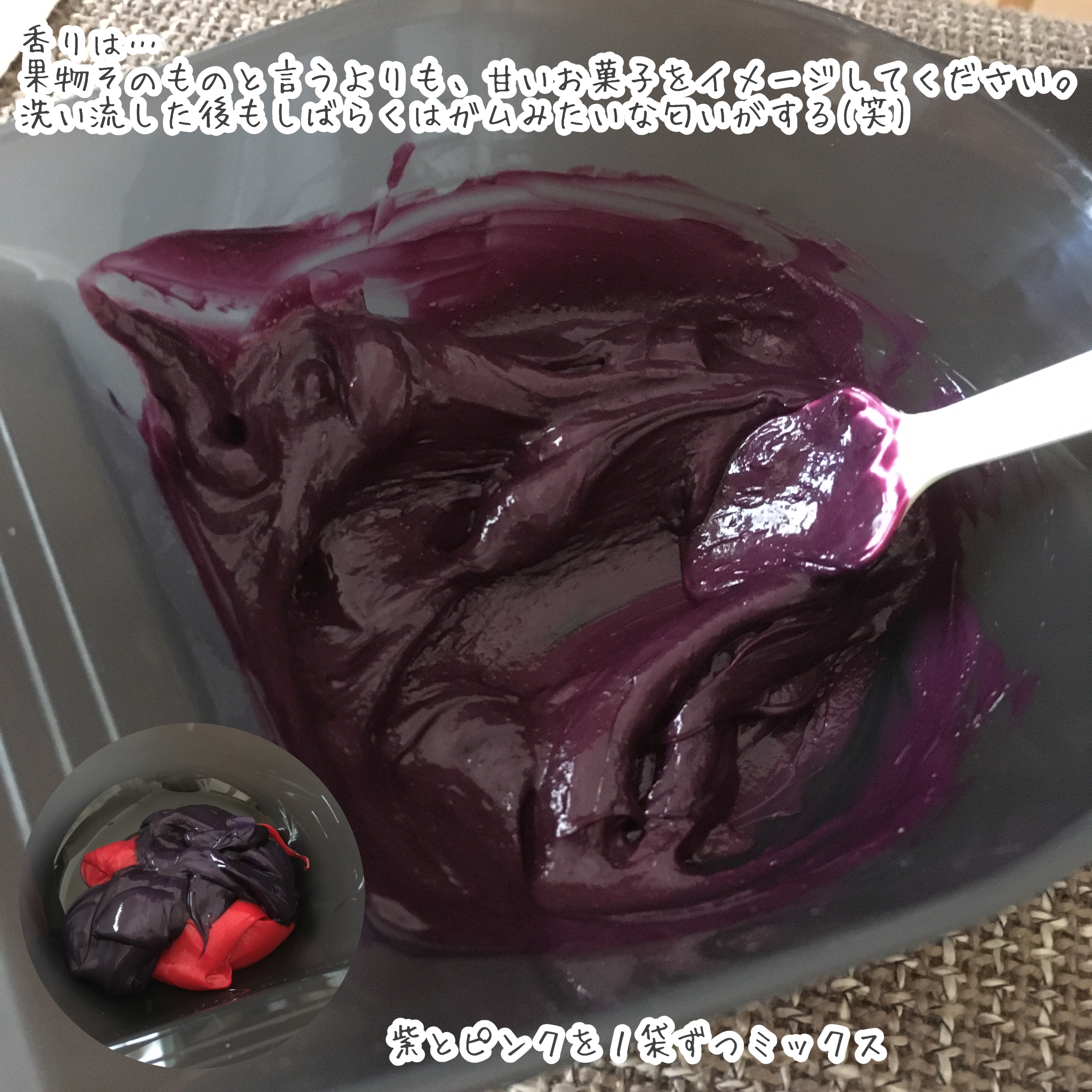 - <キラーブラック> 水、DPG、セタノール、セテアリルアルコール、水添ポリイソブテン、ジメチコン、セトリモニウムブロミド、グリセリン、シクロヘキサン-1,4-ジカルボン酸ビスエトキシジグリコール、ツバキ種子油、ホホバ種子油、イチョウ葉エキス、ミツロウ、セテス-40、PEG-90M、ステアルトリモニウムブロミド、イソプロパノール、エチドロン酸、乳酸、塩基性青99、塩基性茶16、紫401、塩基性赤76、塩基性黄57、HC黄4、HC青2、水酸化Na、エタノール、BG、香料 <ワイルドレッド> 水、DPG、セタノール、セテアリルアルコール、水添ポリイソブテン、ジメチコン、セトリモニウムブロミド、グリセリン、シクロヘキサン-1,4-ジカルボン酸ビスエトキシジグリコール、ツバキ種子油、ホホバ種子油、イチョウ葉エキス、ミツロウ、セテス-40、PEG-90M、ステアルトリモニウムブロミド、イソプロパノール、エチドロン酸、乳酸、塩基性赤51、塩基性橙31、HC赤3、水酸化Na、エタノール、BG、香料 <ムーンヴァイオレット> 水、DPG、セタノール、セテアリルアルコール、水添ポリイソブテン、ジメチコン、セトリモニウムブロミド、グリセリン、シクロヘキサン-1,4-ジカルボン酸ビスエトキシジグリコール、ツバキ種子油、ホホバ種子油、イチョウ葉エキス、ミツロウ、セテス-40、PEG-90M、ステアルトリモニウムブロミド、イソプロパノール、エチドロン酸、乳酸、HC青2、塩基性青9、HC青15、塩基性赤51、水酸化Na、エタノール、BG、香料 <マーメイドブルー> 水、DPG、セタノール、セテアリルアルコール、水添ポリイソブテン、ジメチコン、セトリモニウムブロミド、グリセリン、シクロヘキサン-1,4-ジカルボン酸ビスエトキシジグリコール、ツバキ種子油、ホホバ種子油、イチョウ葉エキス、ミツロウ、セテス-40、PEG-90M、ステアルトリモニウムブロミド、イソプロパノール、エチドロン酸、乳酸、HC青2、HC青16、塩基性赤51、水酸化Na、エタノール、BG、香料 <マジカルミルキー > 水、DPG、セタノール、セテアリルアルコール、水添ポリイソブテン、ジメチコン、セトリモニウムブロミド、グリセリン、シクロヘキサン-1,4-ジカルボン酸ビスエトキシジグリコール、ツバキ種子油、ホホバ種子油、イチョウ葉エキス、ミツロウ、セテス-40、PEG-90M、ステアルトリモニウムブロミド、イソプロパノール、エチドロン酸、乳酸、水酸化Na、エタノール、BG、香料 <キャンディピンク> 水、DPG、セタノール、セテアリルアルコール、水添ポリイソブテン、ジメチコン、セトリモニウムブロミド、グリセリン、シクロヘキサン-1,4-ジカルボン酸ビスエトキシジグリコール、ツバキ種子油、ホホバ種子油、イチョウ葉エキス、ミツロウ、セテス-40、PEG-90M、ステアルトリモニウムブロミド、イソプロパノール、エチドロン酸、乳酸、塩基性赤51、水酸化Na、エタノール、BG、香料 <キャプテンターコイズ> 水、DPG、セタノール、セテアリルアルコール、水添ポリイソブテン、ジメチコン、セトリモニウムブロミド、グリセリン、シクロヘキサン-1,4-ジカルボン酸ビスエトキシジグリコール、ツバキ種子油、ホホバ種子油、イチョウ葉エキス、ミツロウ、セテス-40、PEG-90M、ステアルトリモニウムブロミド、イソプロパノール、エチドロン酸、乳酸、酸化チタン、塩基性青99、HC青15、HC青16、黄203、水酸化Na、水酸化Al、エタノール、BG、香料 <サーフィンオレンジ> 水、DPG、セタノール、セテアリルアルコール、水添ポリイソブテン、ジメチコン、ベヘントリモニウムメトサルフェート、グリセリン、シクロヘキサン-1,4-ジカルボン酸ビスエトキシジグリコール、ツバキ種子油、ホホバ種子油、イチョウ葉エキス、ミツロウ、セテス-40、PEG-90M、エチドロン酸、乳酸、HC黄2、塩基性橙31、塩基性黄87、水酸化Na、BG、香料