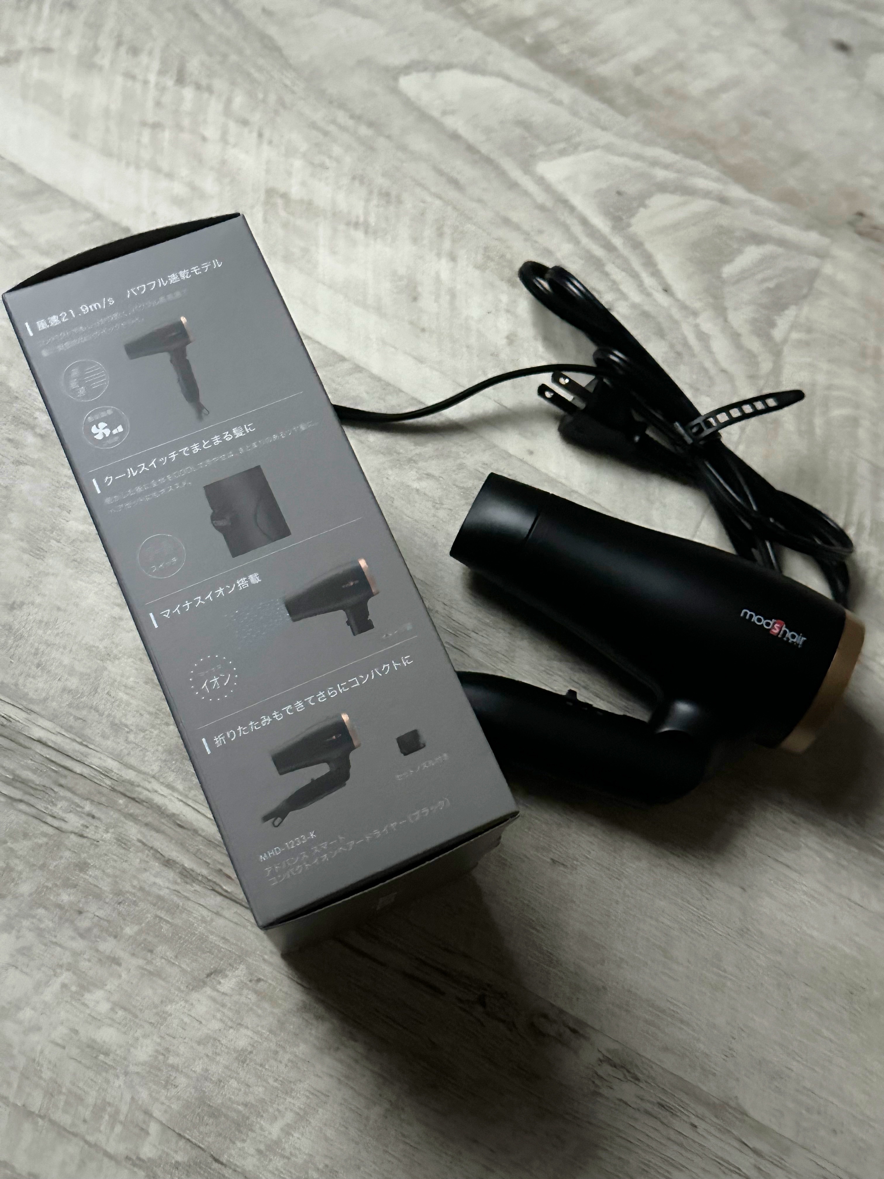 サイズがコンパクトだから風量弱めかなと思ったけど しっかり高風速で 毛量がしっかりあるわたしでも サッと乾かせて感動🥹🤍 冷風モードもあるし マイナスイオン搭載だから 乾かした後もまとまった艶髪に…! 折りたためるから収納する場所にも 困らないしこのサイズ感だったら 旅行にも持って行きたい🛩 モッズヘアっぽいオシャレで スタイリッシュな見た目も おすすめポイント⸜❤︎⸝