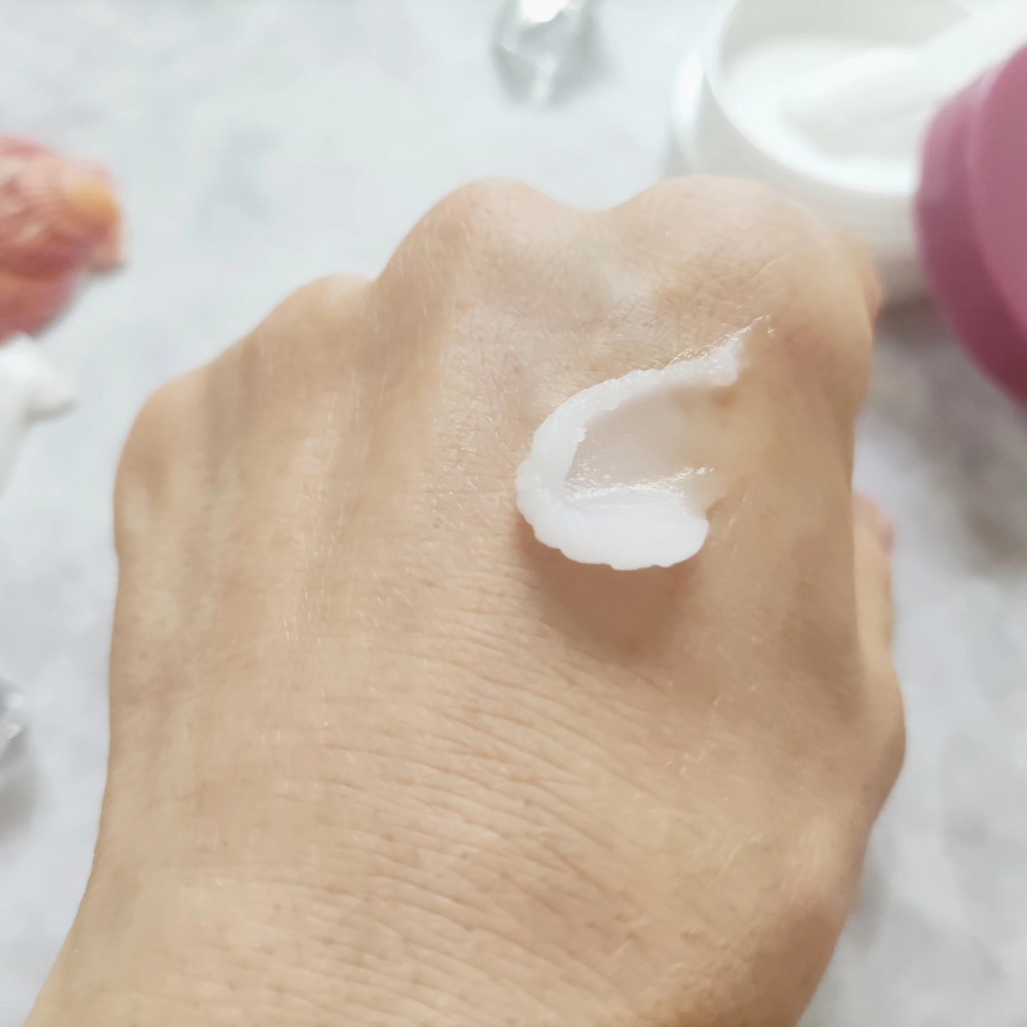 - <90g> カオリン、水、ペンチレングリコール、BG、ヒアルロン酸Na、香料、ヤシ油、ノイバラ果実エキス、ミツロウ、シア脂、セラミドNG、水添レシチン、パルミチン酸エチルヘキシル、セラミドNP、セラミドAP、フラガリアチロエンシス果汁、フィトステロールズ、マイクロクリスタリンワックス、ポリエチレン、フェニルトリメチコン、トリ(カプリル酸/カプリン酸)グリセリル、トリイソステアリン酸PEG-20グリセリル、プロテアーゼ、ラウリン酸PEG-12、トリポリヒドロキシステアリン酸ジペンタエリスリチル、ハス花エキス、ステアレス-5、サラソウジュ種子脂