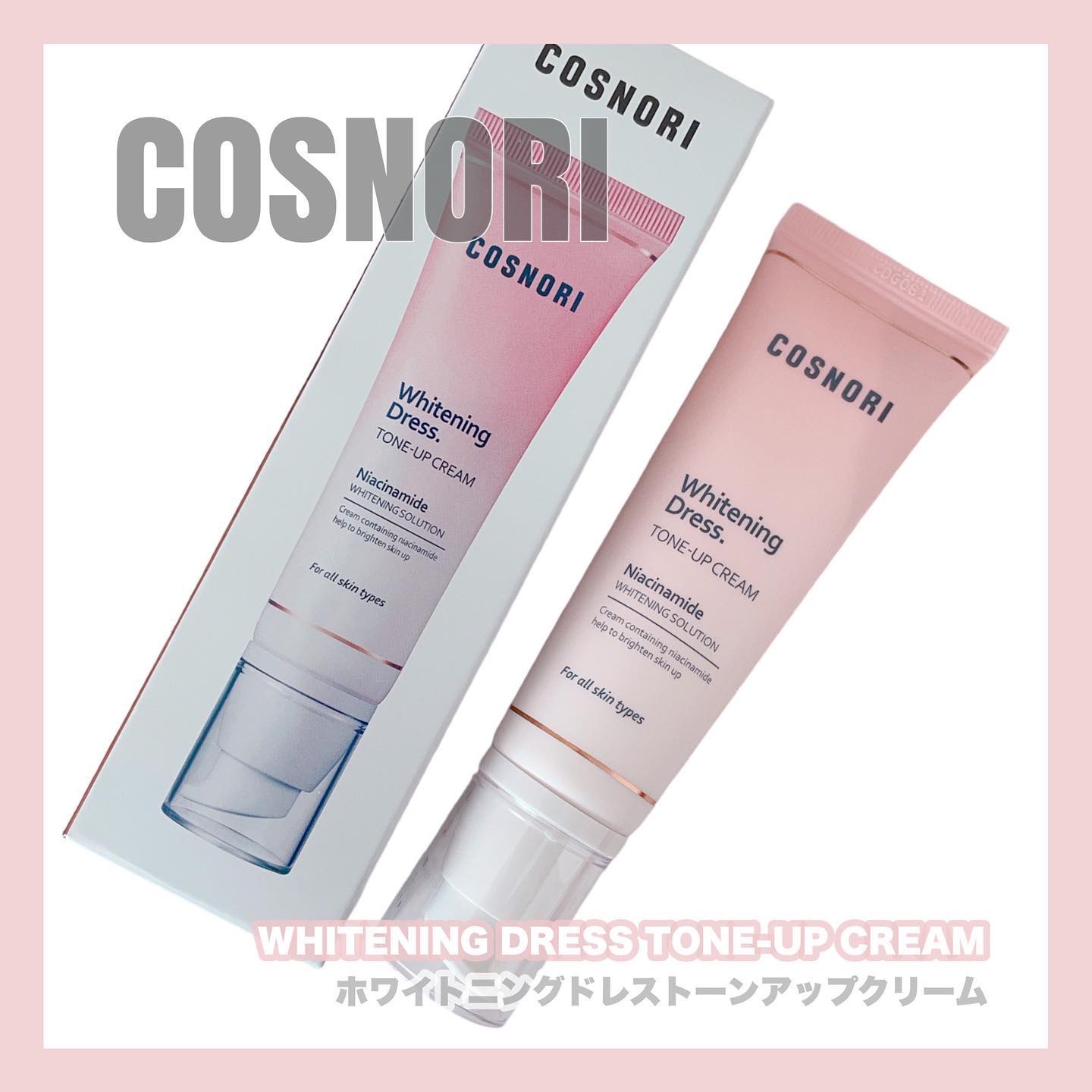 *-*-*-*-*-*-*-*♡♡♡COSNORIホワイトニングドレストーンアップクリーム少量で瞬時にトーンアップしてくれる❣️サラッと仕上がって服にもつきにくいから首や腕にも使える‼️気になる肘やひざにも使える😊サラサラに仕上がるからベタつ...