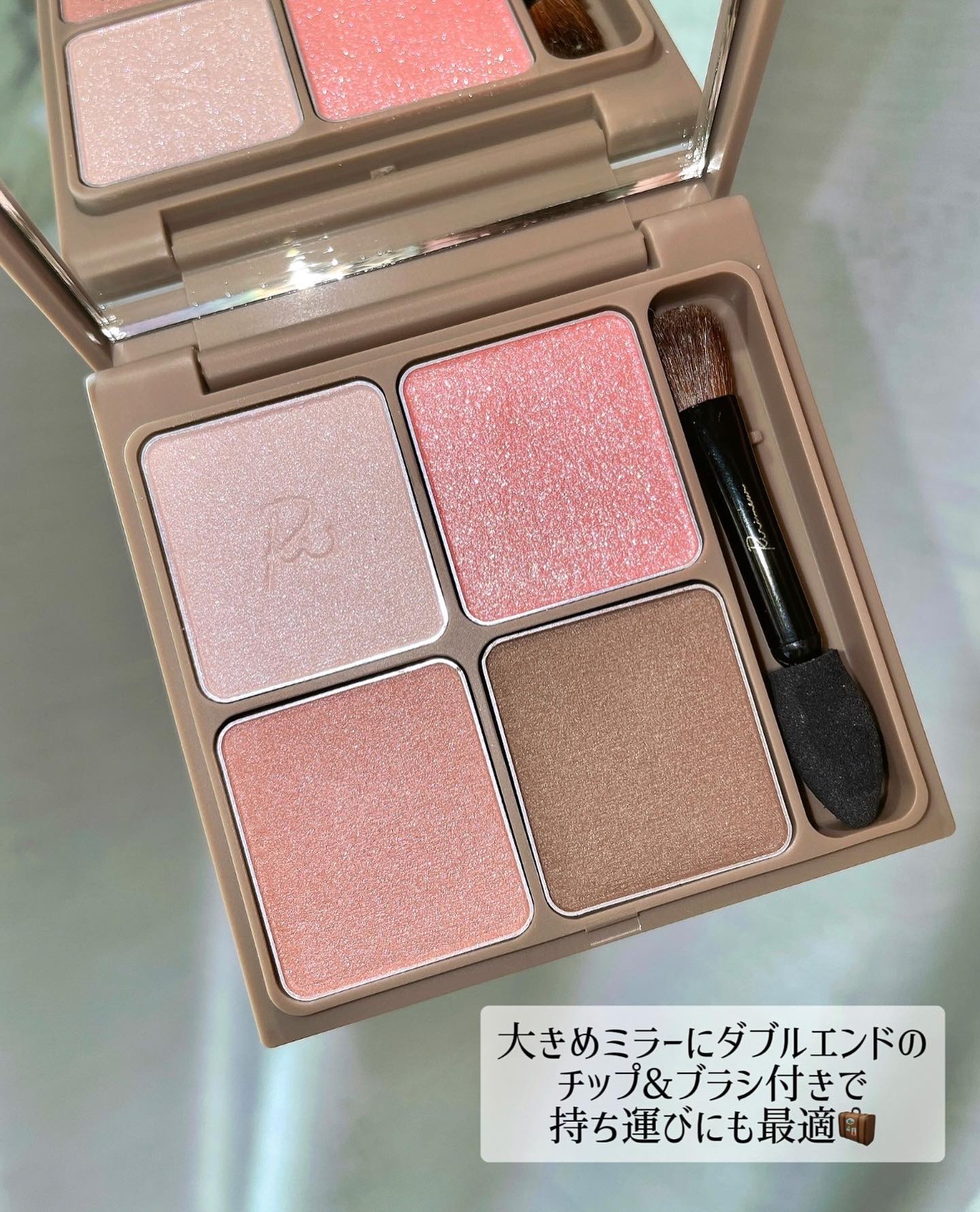 - 2021年3月15日(月)予約販売開始 色×光×質感を1つに詰め込み、毎日のアイメイクのバリエー ションを膨らませる4色のアイシャドウパレット。 ・発色・質感を調整しやすいチップ&ブラシ ふんわり仕上げたいときはブラシ しっかり発色させたいときはチップを その日の気分に合わせたアイメイクが楽しめる ・ 毎日のメイクが楽しくなる4つのカラー ・こだわりの3つの質感 シマー・プリズム・マットのテクスチャー それぞれのカラーがしっかり色づきピタッと密着 ●保湿美容液成分:セラミド・ヒアルロン酸・モモ葉エキス 配合。 ●ミラー・チップ&ブラシ付き。