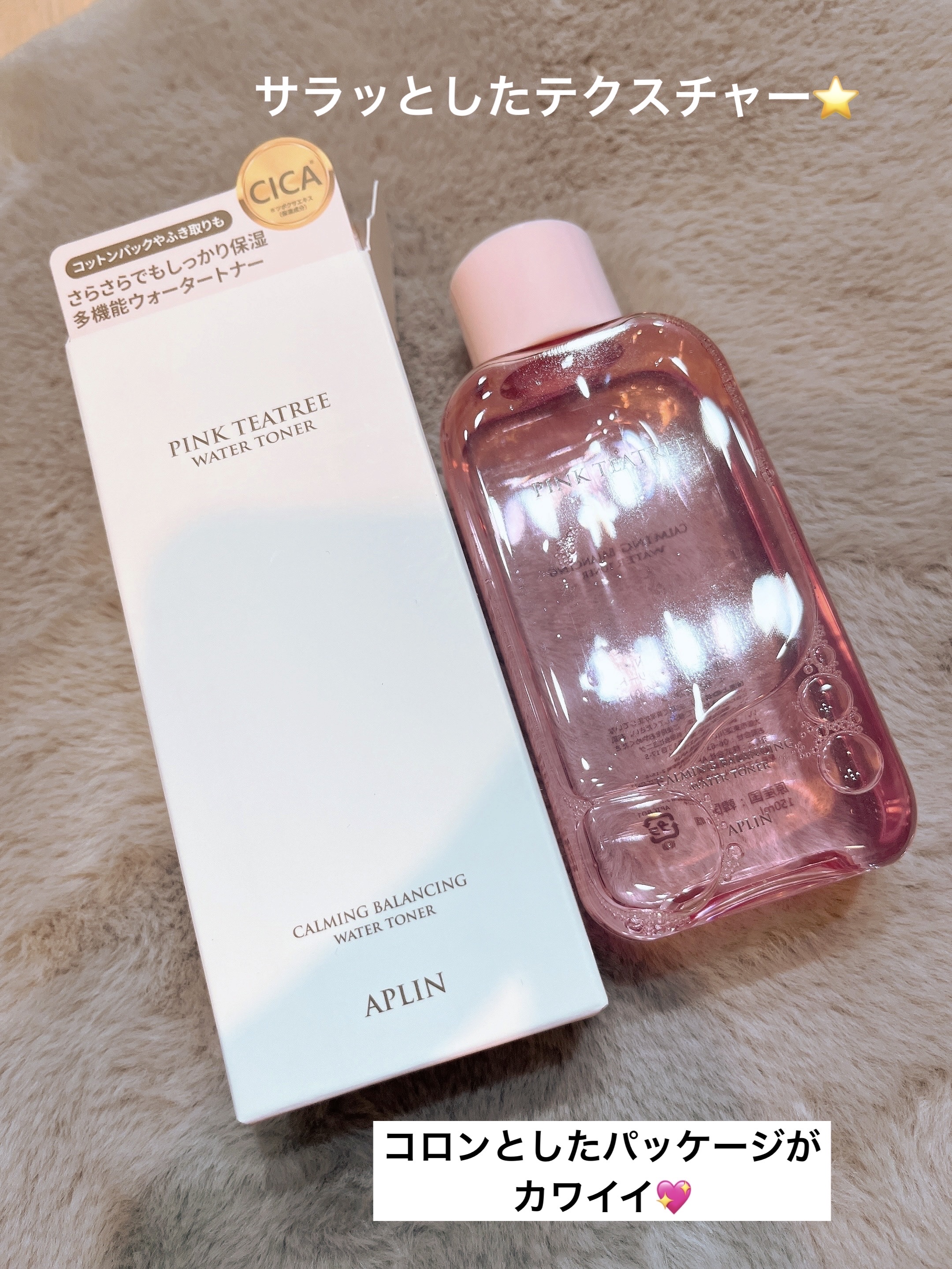 ティーツリーや、シカエキスを配合でニキビ、肌荒れ悩みをケアしてくれるトナー🩷 ピンク色は自然成分「ビタミンB12」本来の色だそう✨ サラサラテクスチャーで、さっぱりした使い心地✨