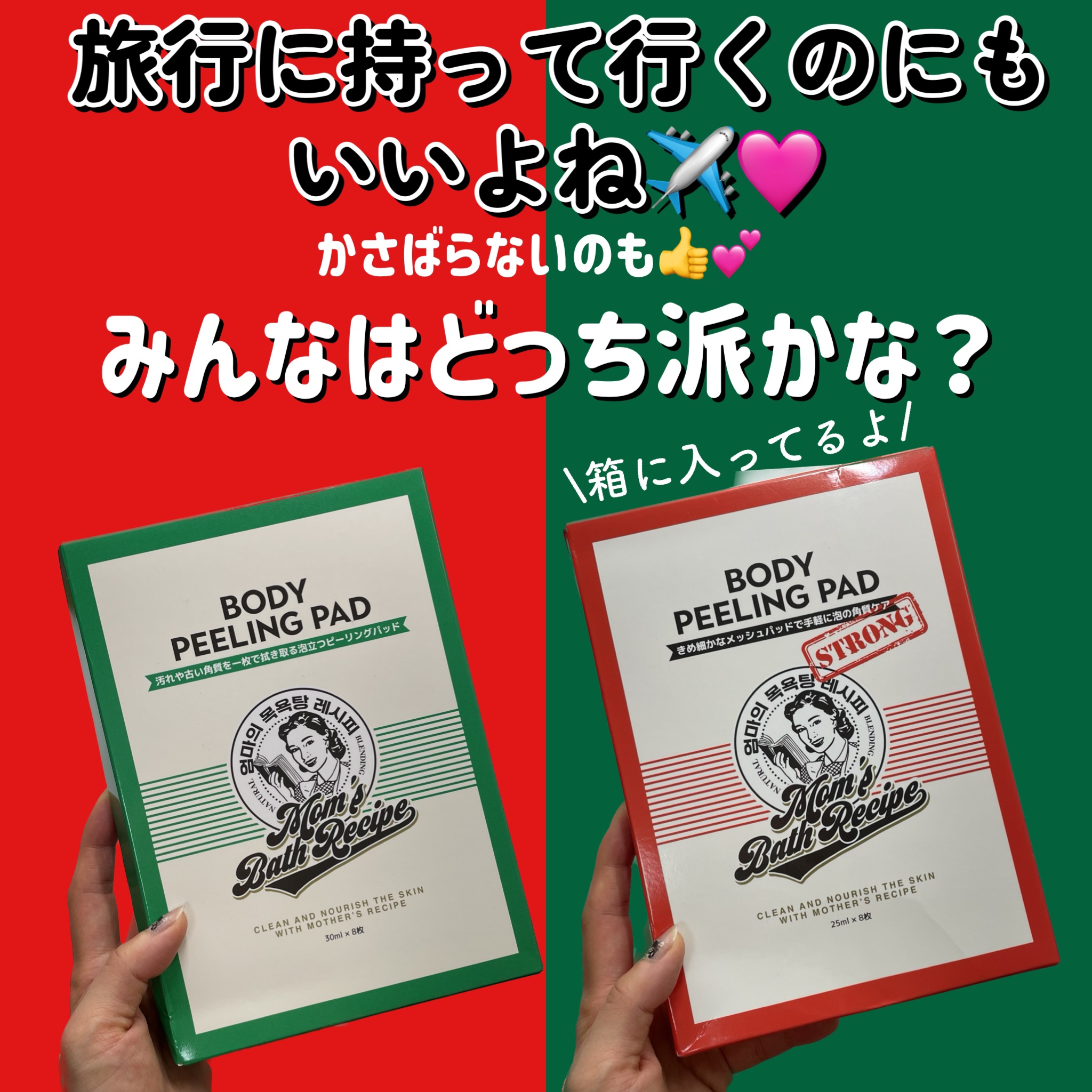 .:▪️Mom’sBathRecipe▪️BODYPEELINGPAD•レギュラータイプ(グリーン)•ハードタイプ(レッド)「汚れや古い角質を一枚で拭き取るピーリングパッド」▫️POINT▫️美容液をたっぷり含んだパッド•保湿効果に優れた発酵...